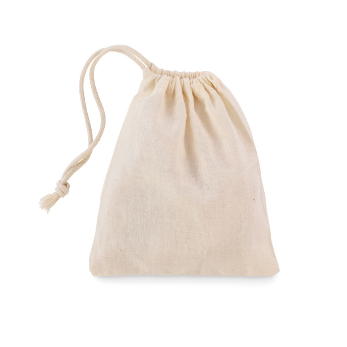 Mini-Bowling-Set aus Kiefernholz. Lieferung in einem Beutel aus Baumwolle mit Kordelzug. Enthält 6 Kegel und 1 Wurfkugel.
