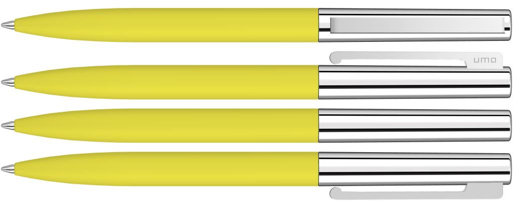 Der UMA Pen UMA BRIGHT GUM Drehkugelschreiber in der Farbe gelb ist ein hochwertiges Schreibgerät der Marke UMA. Die Werbekugelschreiber der Marke UMA Kugelschreiber zeichnen sich durch ein modernes und zeitloses Design aus. Der UMA BRIGHT GUM Drehkugelschreiber transportiert Ihre Werbebotschaft auf eindrucksvolle Weise und zeichnet sich durch höchste Schreibqualität aus.