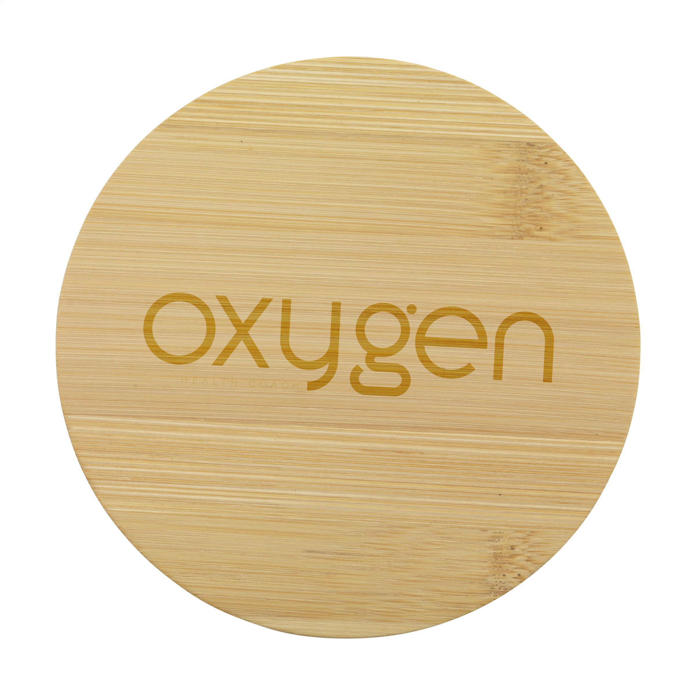 WoW! Set mit 4 Untersetzern aus Bambus (Ø 10 cm) in einer Baumwolltasche. Verpackt in einem Umschlag aus Kraftpapier.