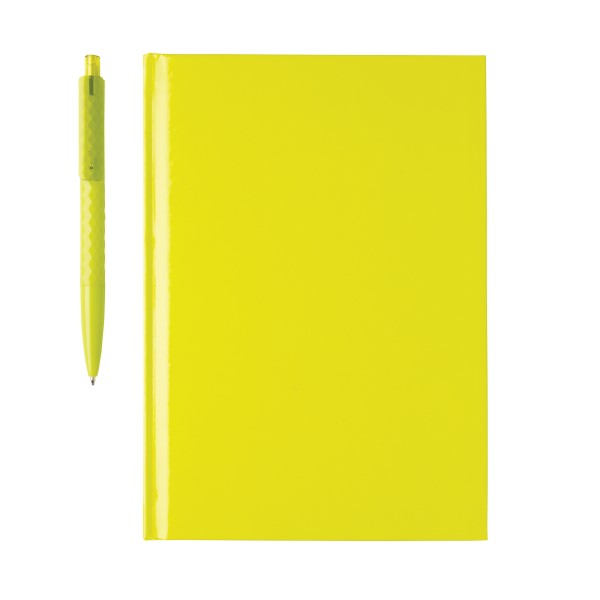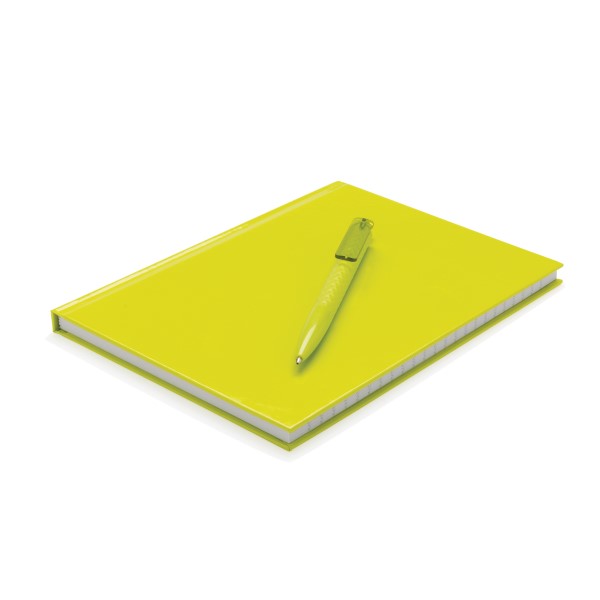Liniertes DIN A5 Hardcover Notizbuch im Set mit einem X3-Stift. 80 weiße Seiten 70g/m². In Geschenkverpackung verpackt.