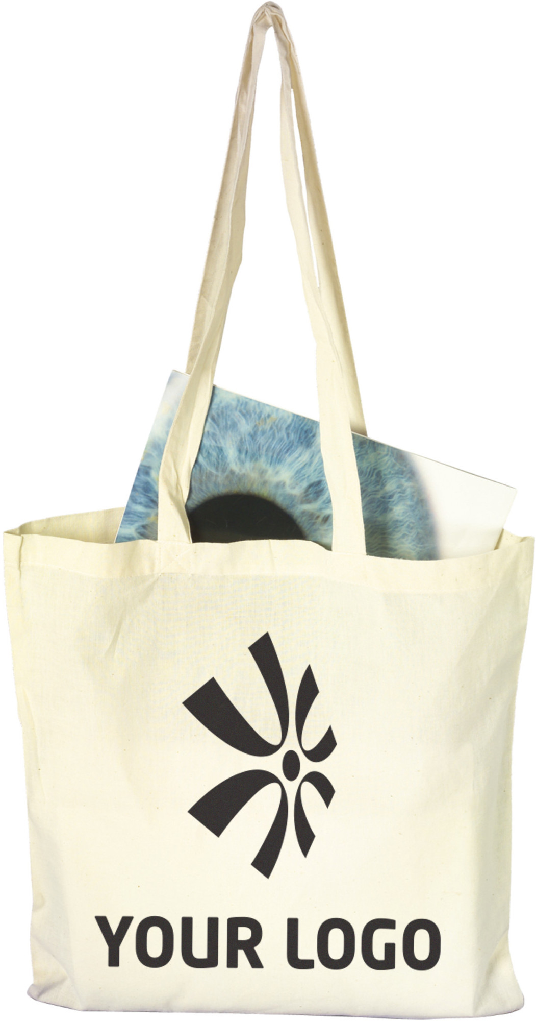 Baumwolltasche (110 g/m²) mit langen Henkeln.