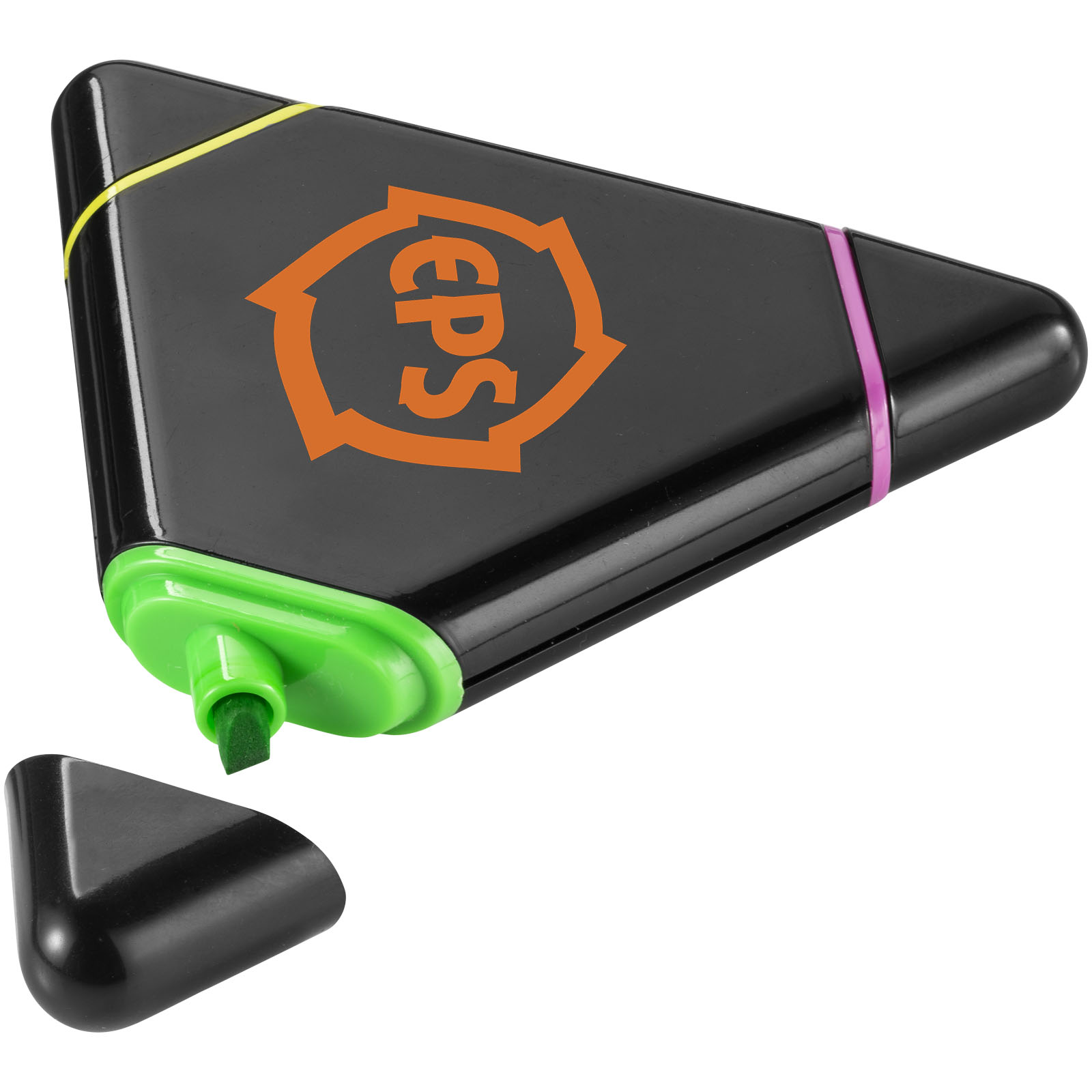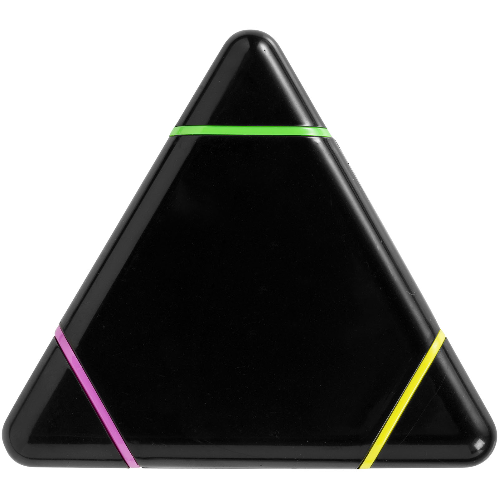 Dreieckiger Marker mit Keilspitze in Gelb, Pink und Grün.