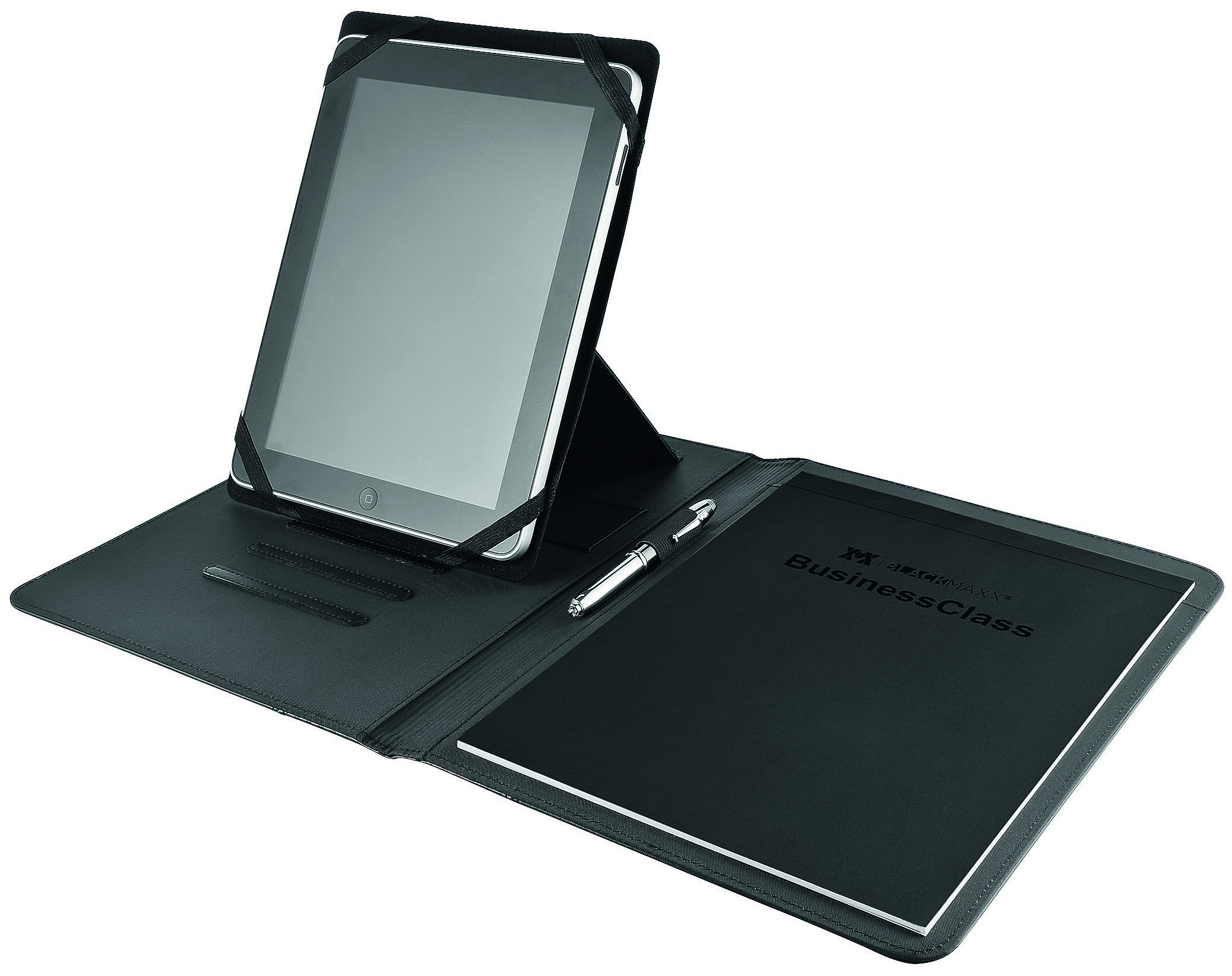 Business Class Portfolio mit funktionaler Aufteilung und Pad-Halter (von 7" - 10,1"). DIN A4 Format, Aufstellfunktion, VPE 20. Business Block, Kartenhalter, Einsteckfach.