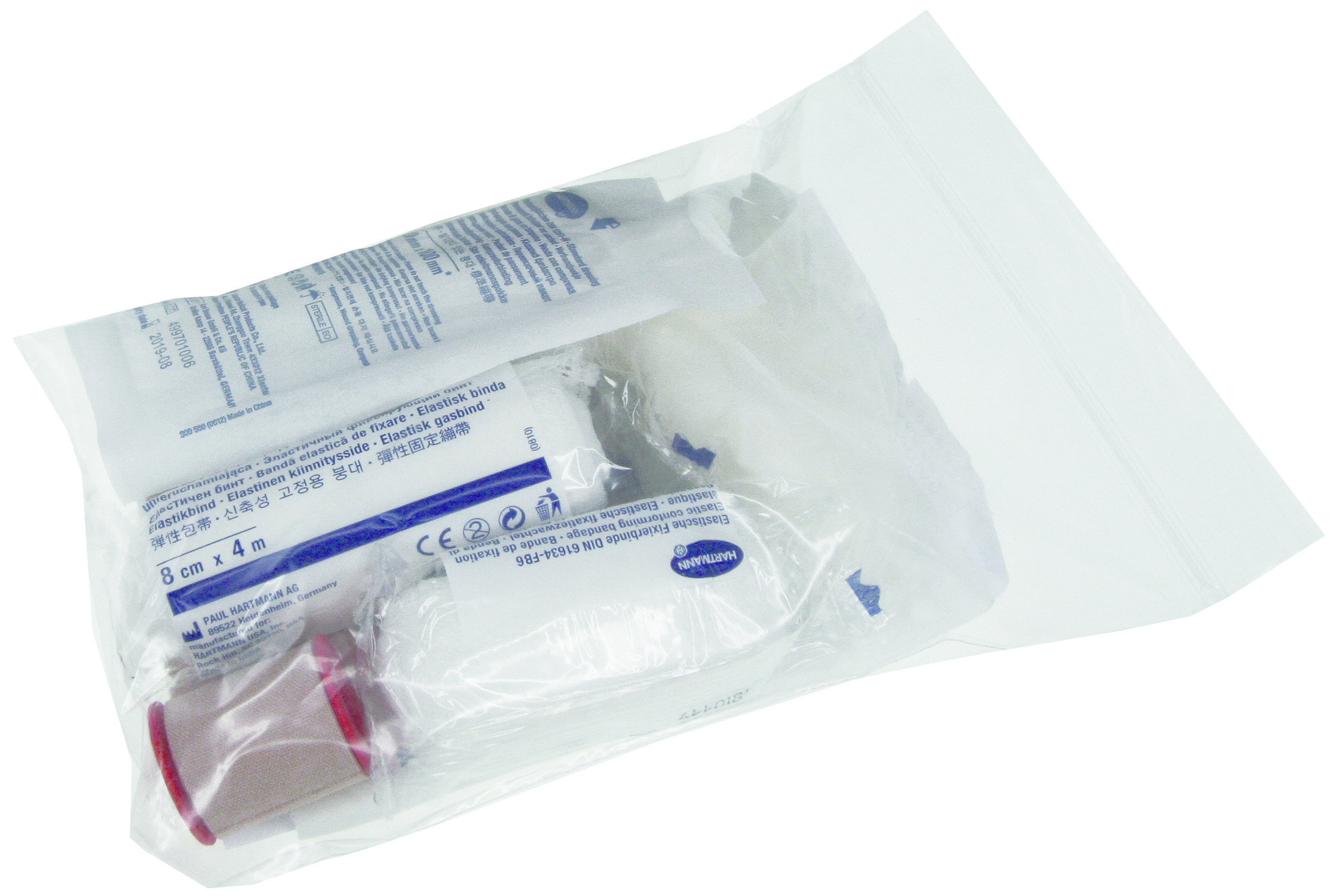 BlackMaxx® Erste-Hilfe-Set mit 2 Klettbandschlaufen und umfangreichem Inhalt. 24-teiliger Inhalt, Deutsche Qualitätsausstattung der Fa. Holthaus. , VPE 200. 4xWundpflaster, 2xFingerverband, 2xFingerkuppenpflaster, 6xPflasterstrips, 1 Verbandspäckchen, 1 Schere und je 2 Vlieskompressen, Fixierbinden, Einmalhandschuhe, Klammern