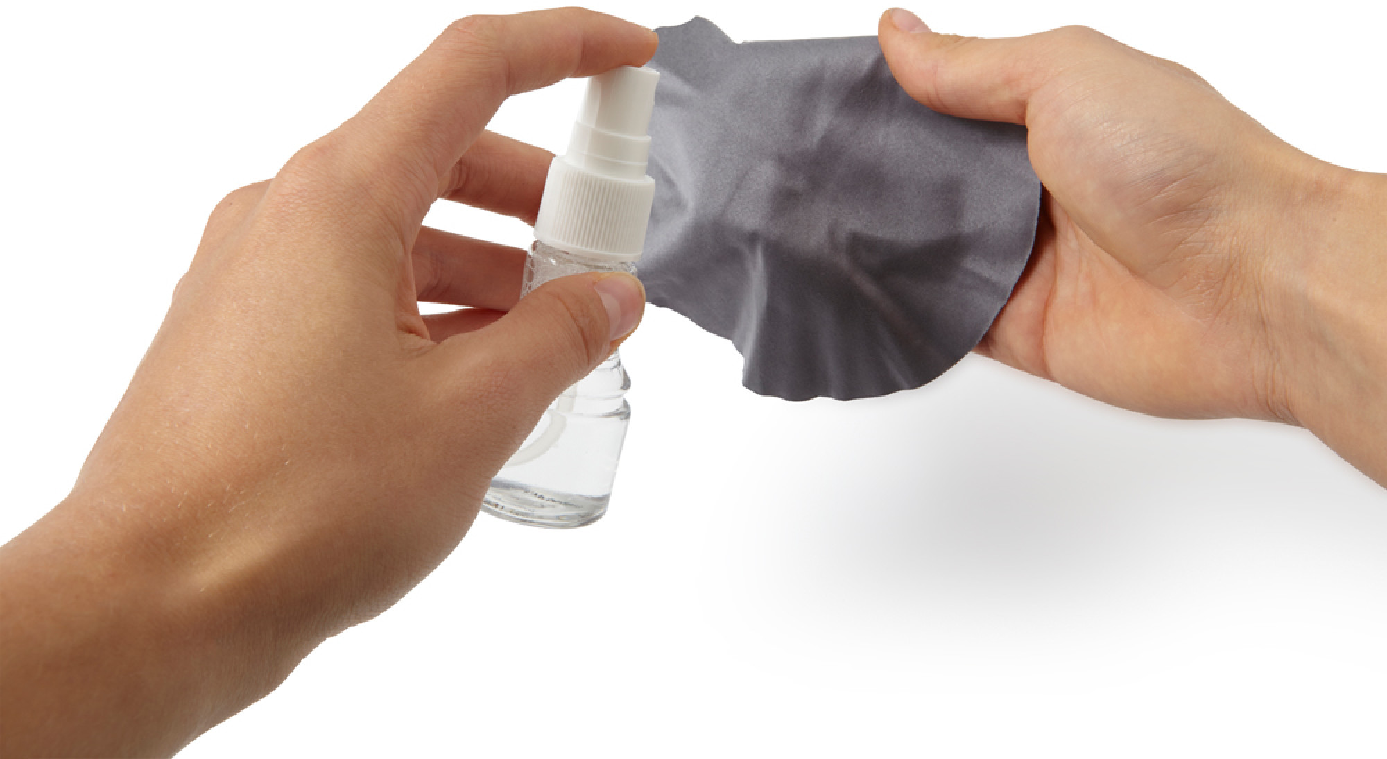 Brillenglas- und Bildschirmreiniger mit Zerstäuber, Inhalt ca. 300 ml, inklusive Reinigungstuch.