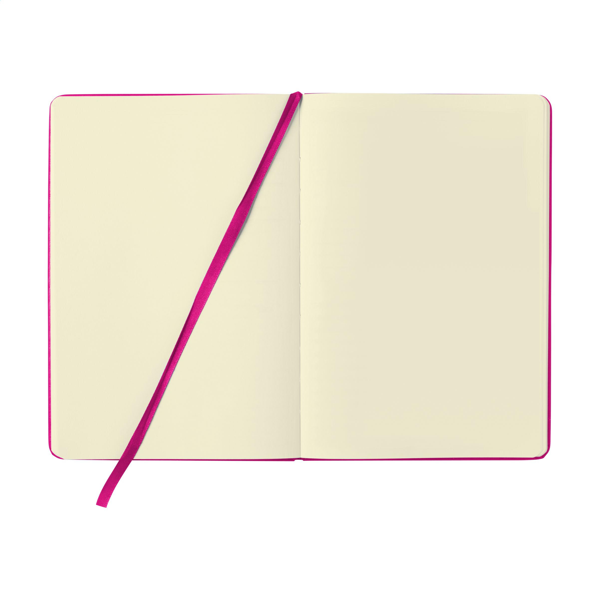 Praktisches Notizbuch im A5-Format. Mit festem PU-Überzug, ca. 80 Blankoblatt/160 Blankoseiten cremefarbenem, unliniertem FSC Mix zertifiziertes Papier (70 g/m²), elastischem Verschluss und Leseband.