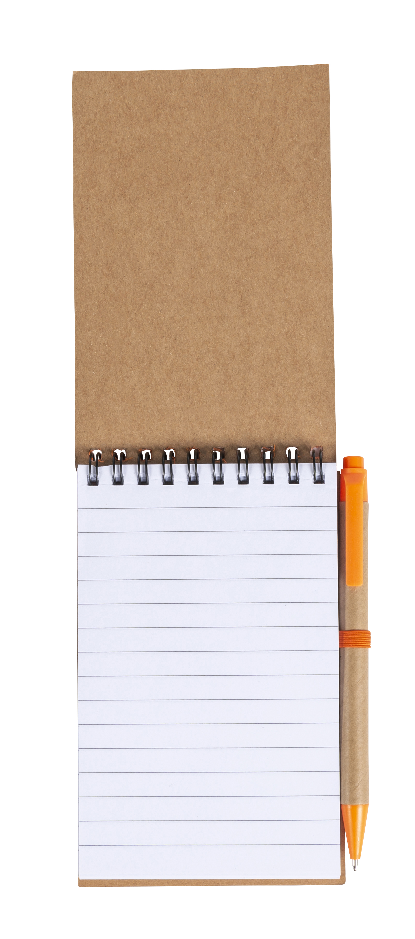 Notizbuch aus recyceltem Karton mit Ringbindung und farbigen Applikationen, 70 linierten Blättern und Kugelschreiber aus Karton/Kunststoff mit blauer Mine.