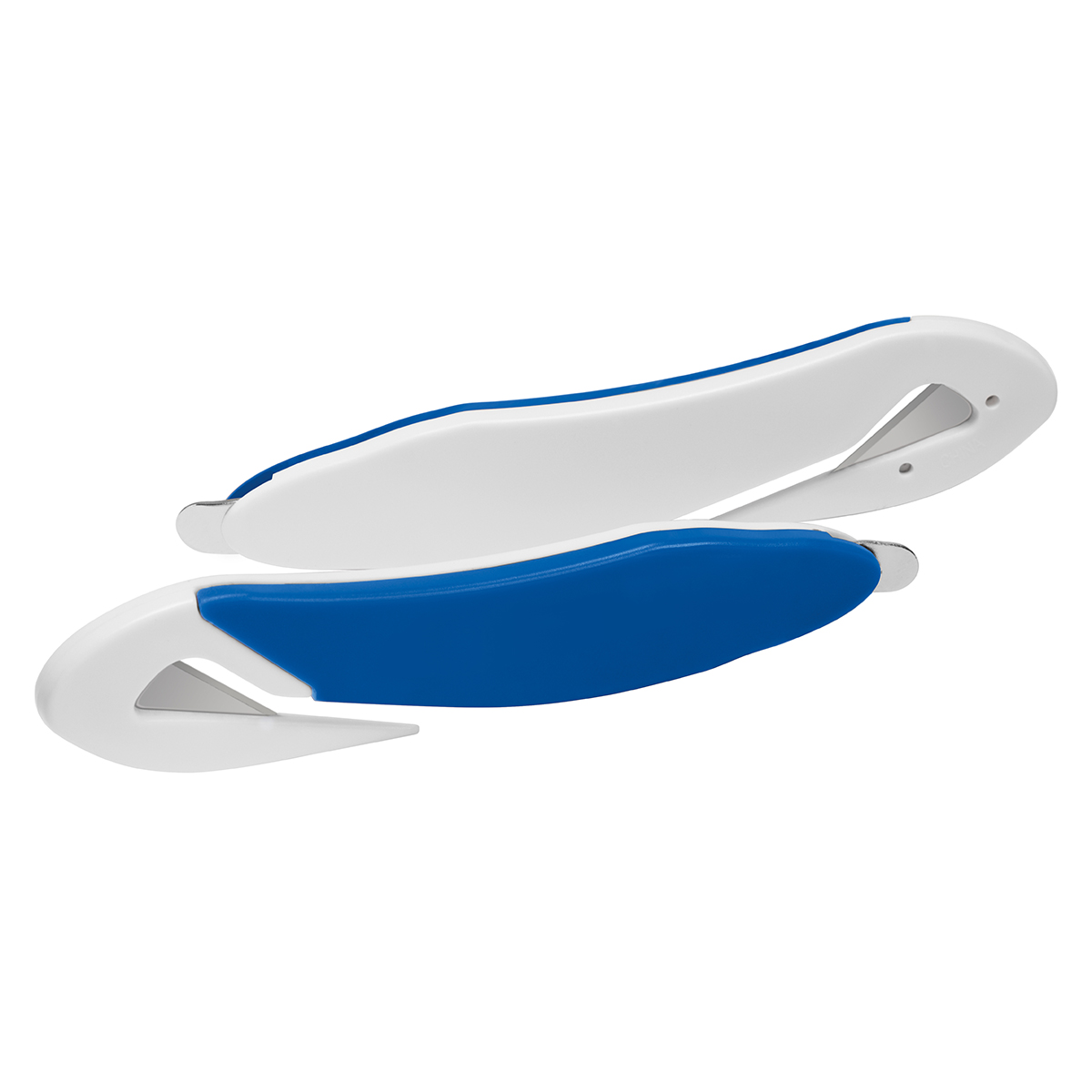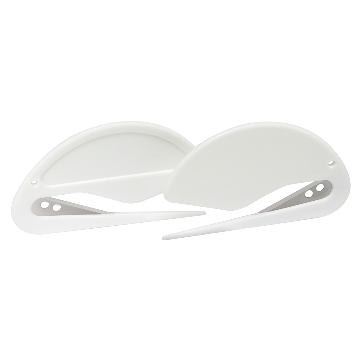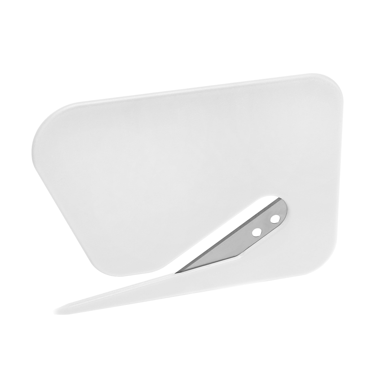 Einfach, praktisch und handlich ist dieser weiße Kunststoff-Brieföffner mit scharfer Metallklinge. Ihre Werbung drucken wir in das Rechteck auf der Vorderseite.
