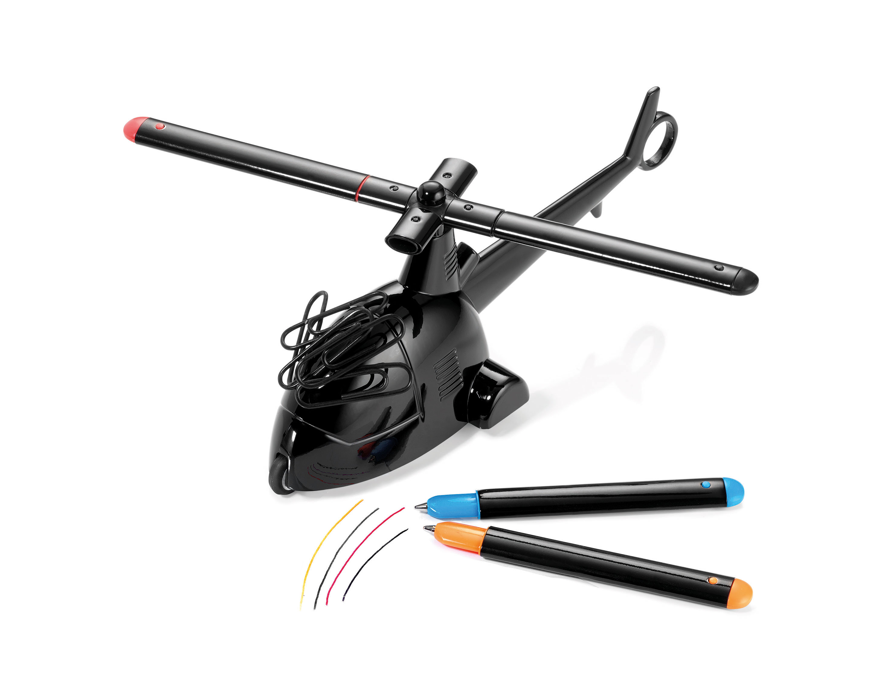 Büroklammernhalter und Briefbeschwerer, Helikopter, Rückziehmotor, 3 Kugelschreiber (blau, rot, schwarz) und 1 Textmarker (orange) im Rotor, Magnet für Büroklammern, inkl. 5 Büroklammern, Metallguss, matt, schwarz Der glänzende Helikopter mit 4 Rotor-Stiften ist READY 4 TAKE OFF. Plus Magnet und Rückziehmotor. Startklar für schnellen Start und gute Einfälle. Der Helikopter READY 4 TAKE OFF hebt (sich) ab: mit 3 Kugelschreibern und 1 Textmarker als Rotorblätter, mit Magnet, 5 Büroklammern und Rückziehmotor. Mit edlem schwarzen Finish – ein selbstbewusster Hingucker zwischen all den normalen Büroaccessoires.