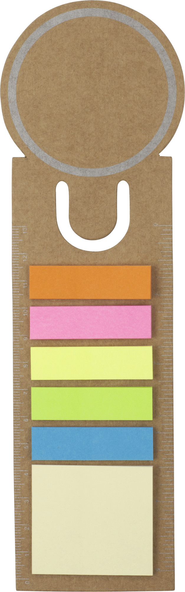 Haftnotizen-Lesezeichen, mit jeweils ca. 25 Haftnotizmarkern in 6 verschiedenen Farben (ca. 12 x 45 mm und ca. 40 x 45 mm) und gedruckten Skalen (13 cm und 5 Inch).