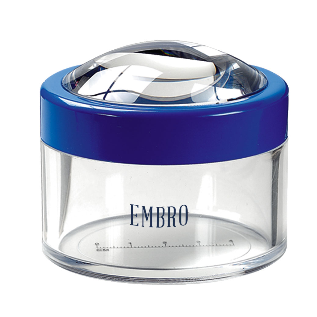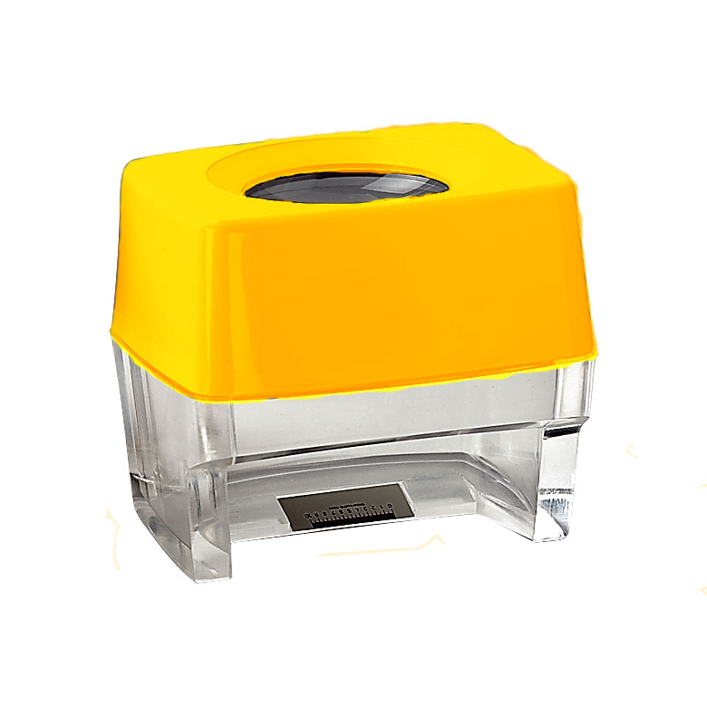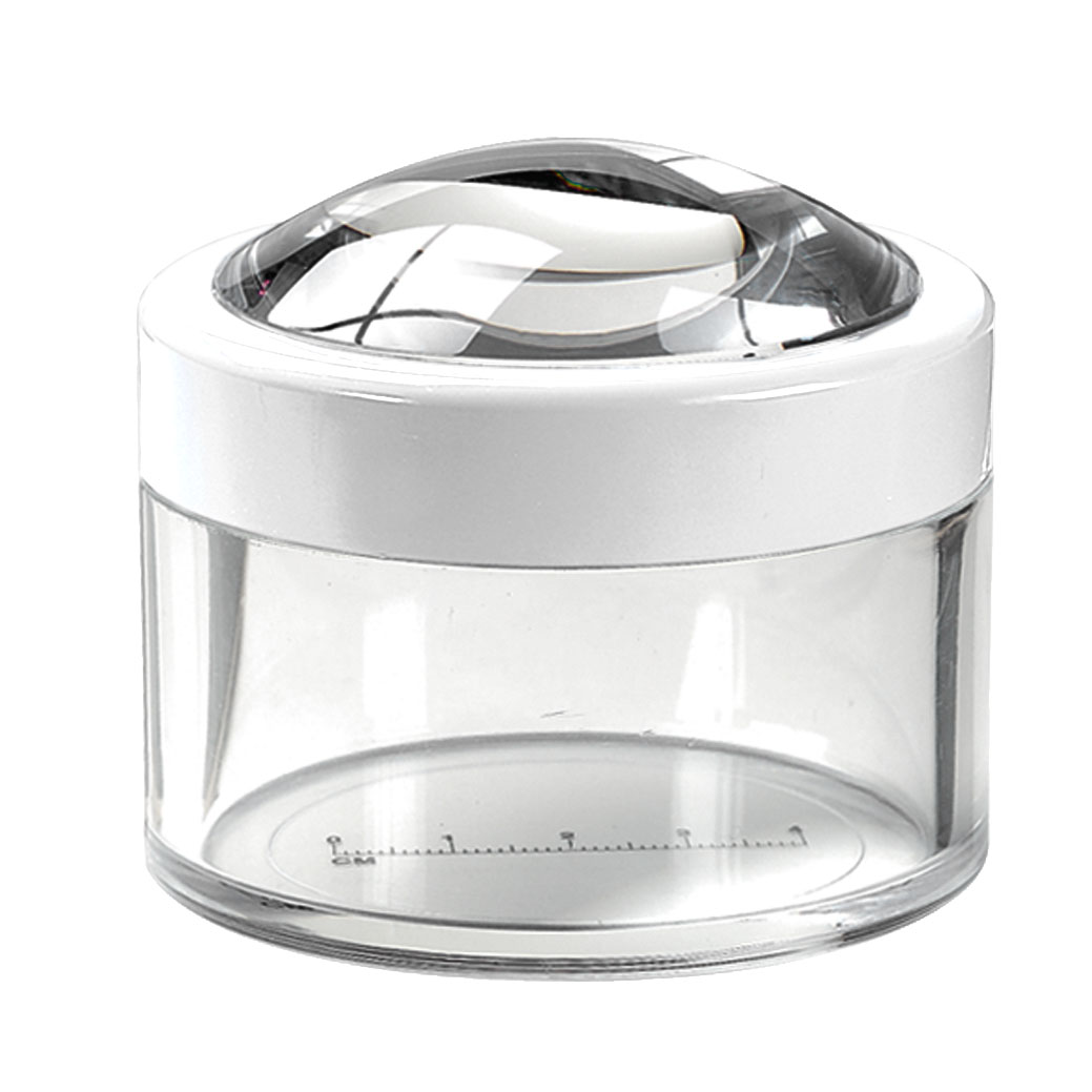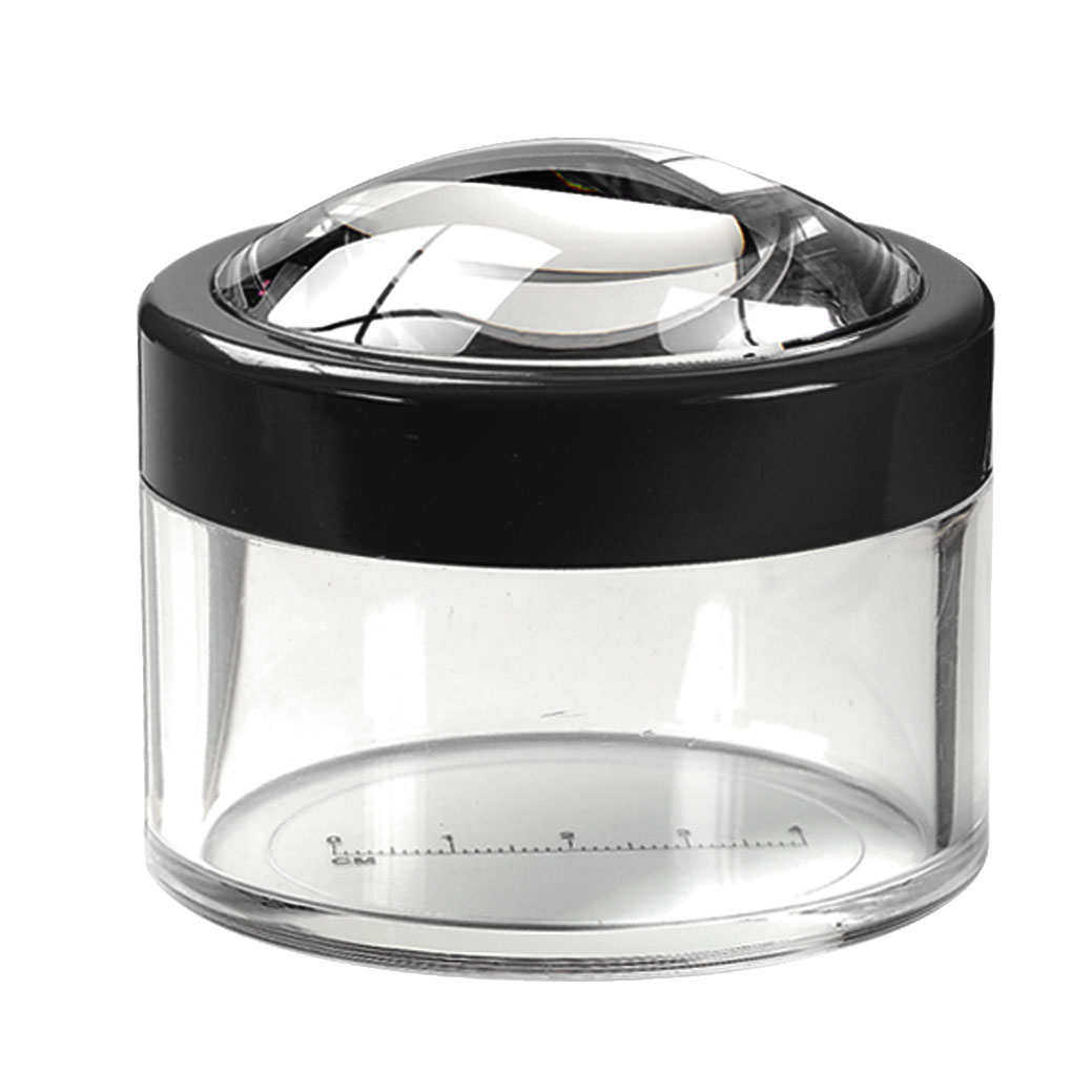Praktisches Vergrößerungsglas mit 4 cm Messskala im Boden. Einfach auf die zu vergrößernde Abbildung stellen.