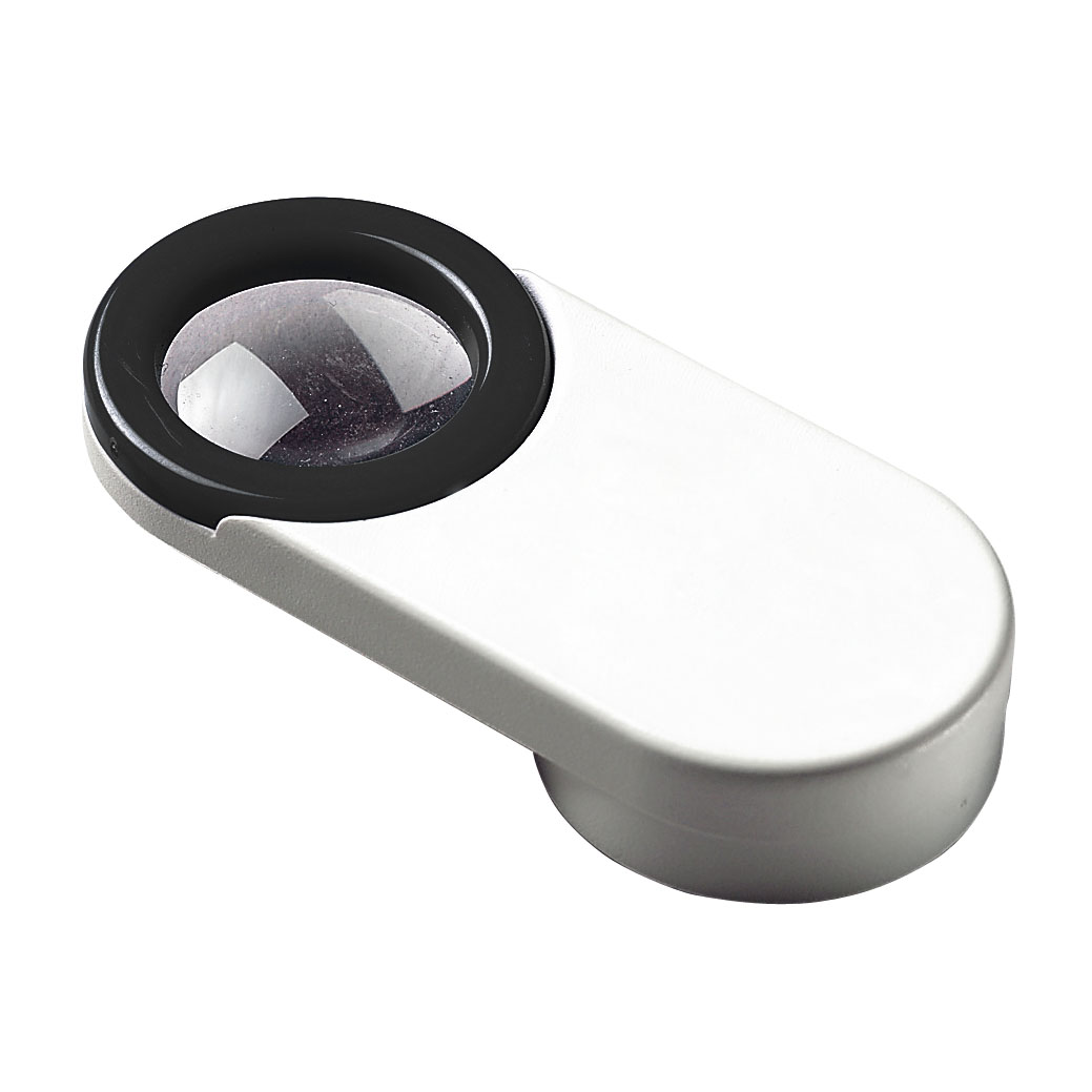 Standfeste Lupe mit großer 24 mm Linsenöffnung, 3 cm Gesichtsfeld und nur 30 g Gewicht.