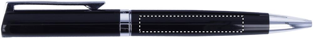 Schreibset aus Aluminium/Metall, bestehend aus Druckbleistift und Kugelschreiber (schwarze Mine), mit Metall-Applikationen und -Clip, verpackt in einer farbig lackierten Box. Ausgestattet mit deutscher Dokumententinte.