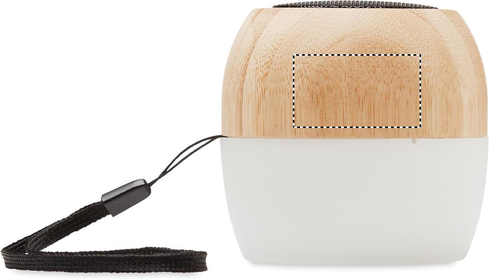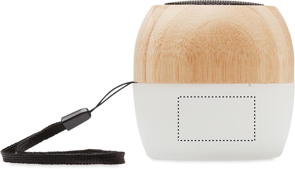 5.0 wireless Lautsprecher aus PP und Bambus. 4farbiges Stimmungslicht und Handschlaufe. Inkl. 1 wiederaufladbarer Li-POL 300 mAh Akku. Ausgangsdaten: 3W, 4 Ohm. Spielzeit ca. 2h. Bambus ist ein natürliches Produkt, es kann daher zu leichten Abweichungen in Farbe, Dekor und Maßen kommen.