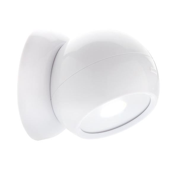 Ultrahelle COB Leuchte aus ABS mit magnetischer Halterung und doppelseitigem 3M Klebestreifen um die Basis auf allen glatten Oberflächen zu befestigen. Die Lampe selbst hält magnetisch an der Basis und kann nun in alle Richtungen gedreht werden. Inkl. Batterien.