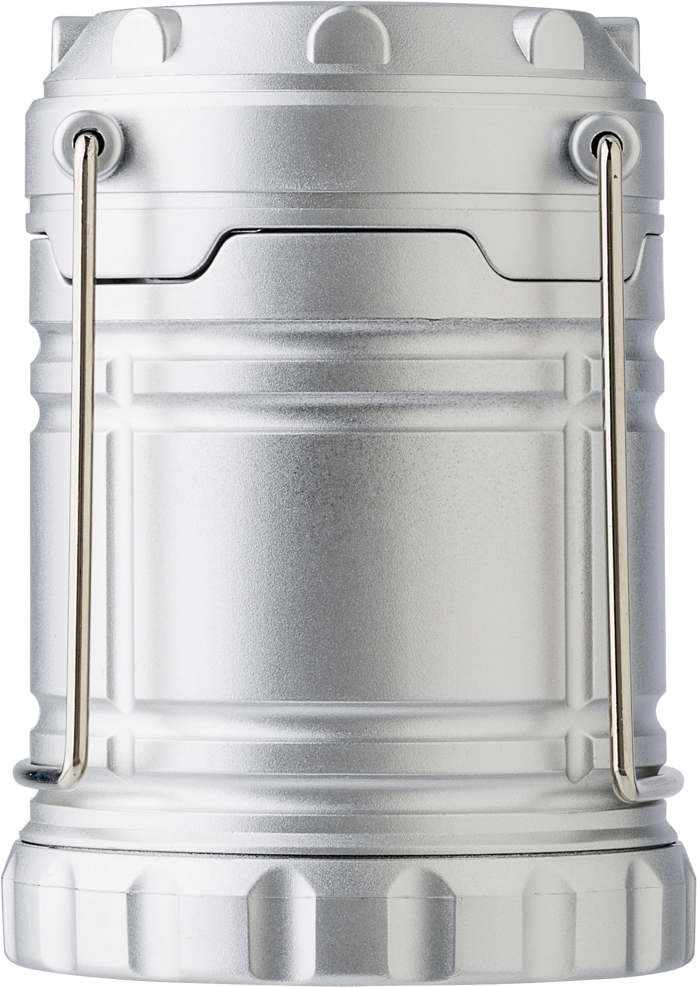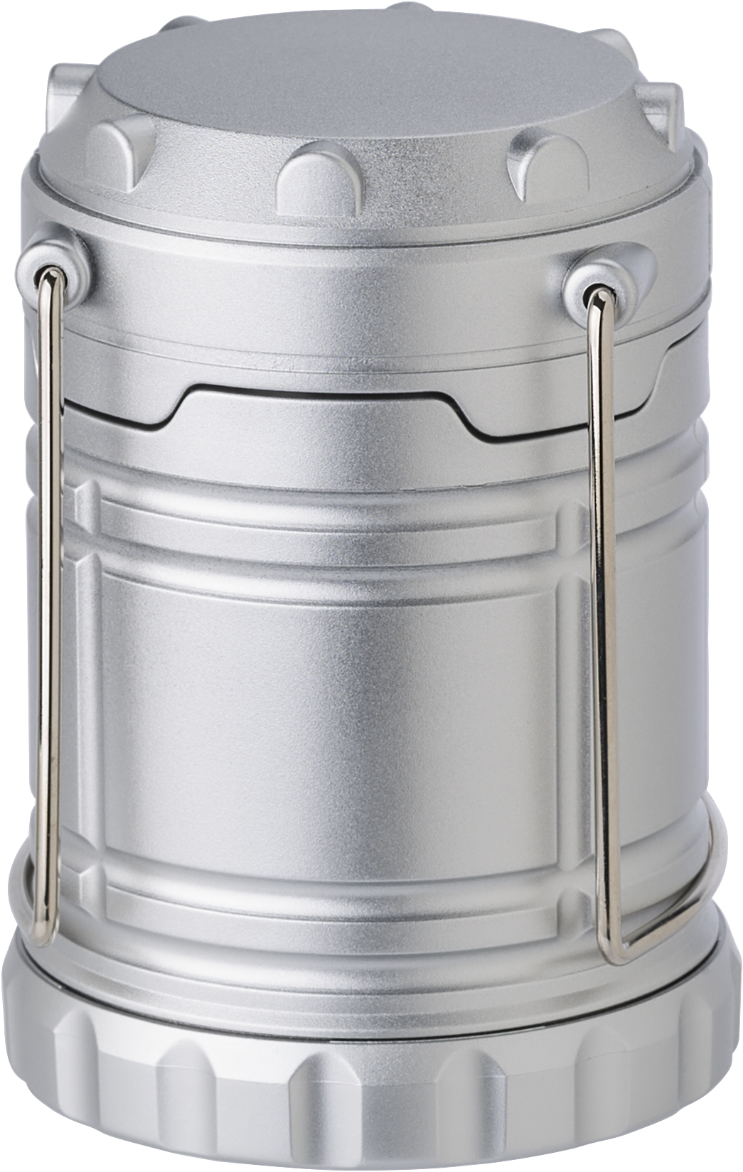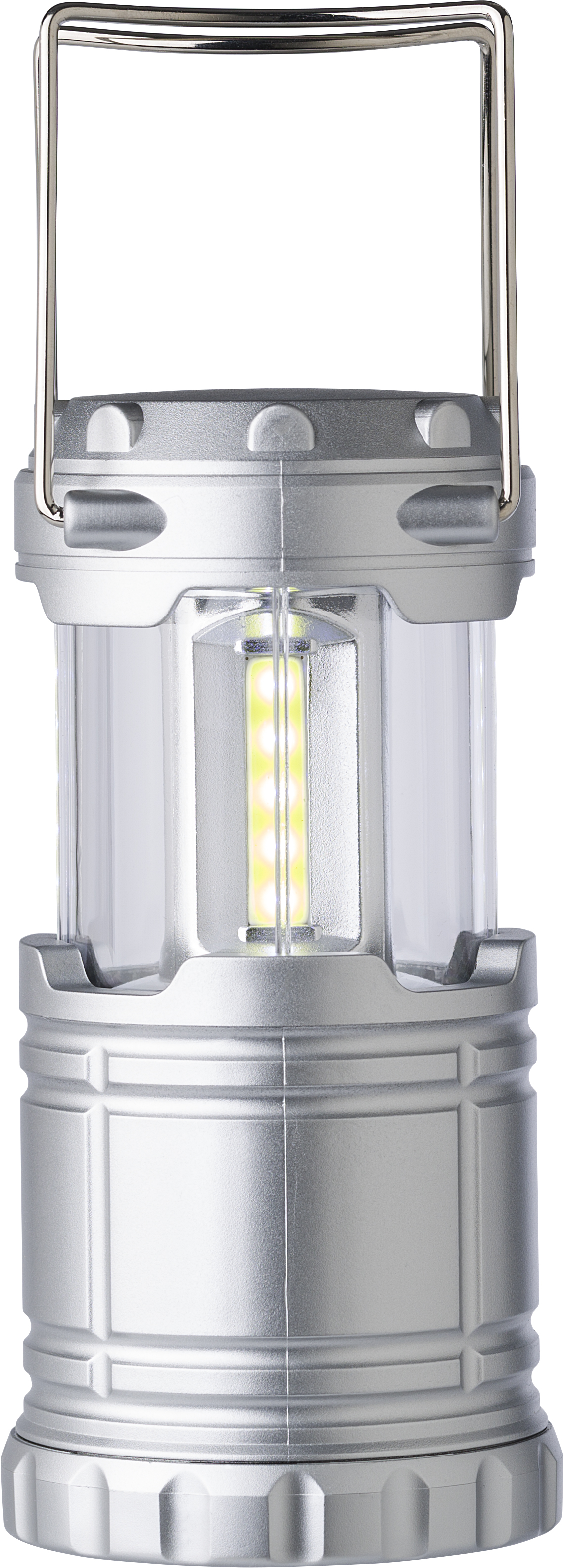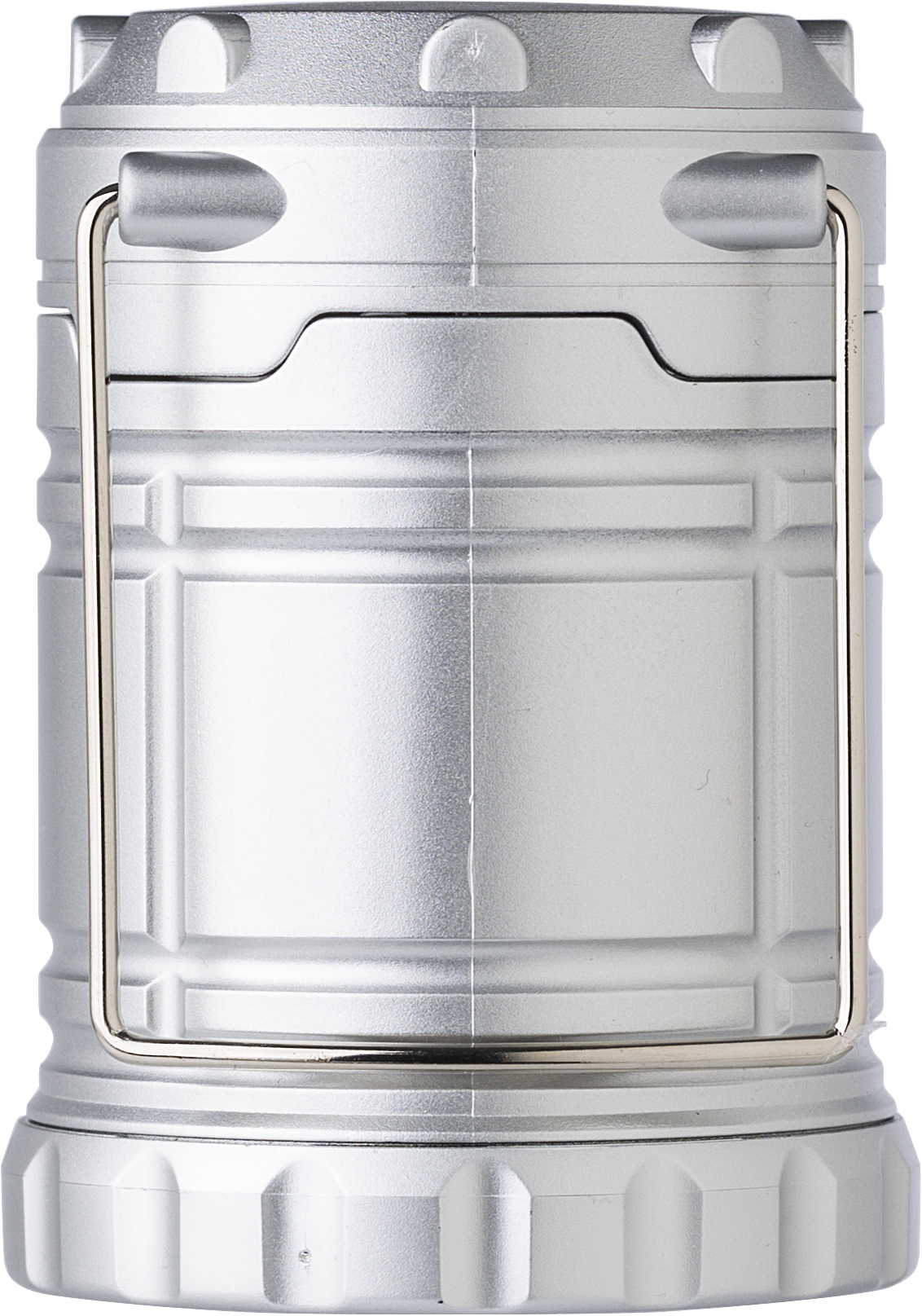 Campinglampe mit drei COB-Leuchtstreifen und zwei Griffen aus Metall. Die Leuchte ist ein-/ausfahrbar.