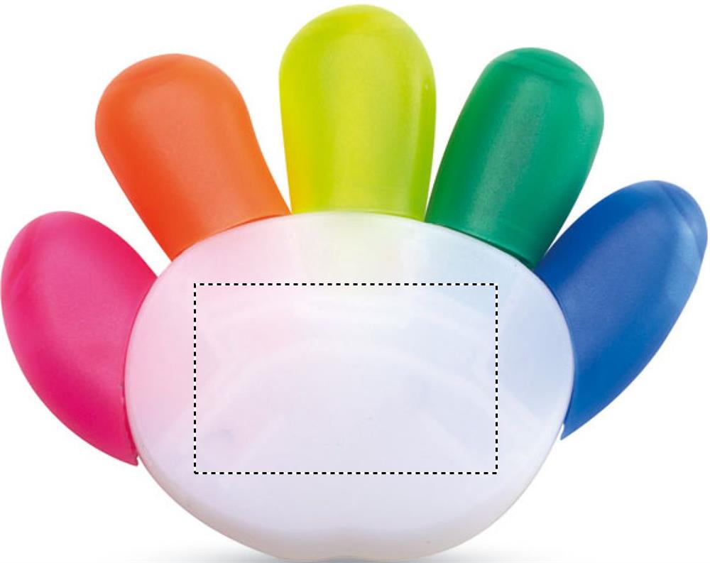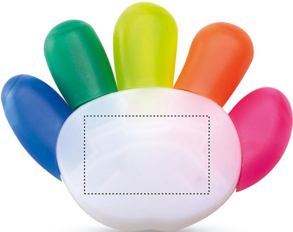 Textmarker mit 5 Farben in Form einer Hand.