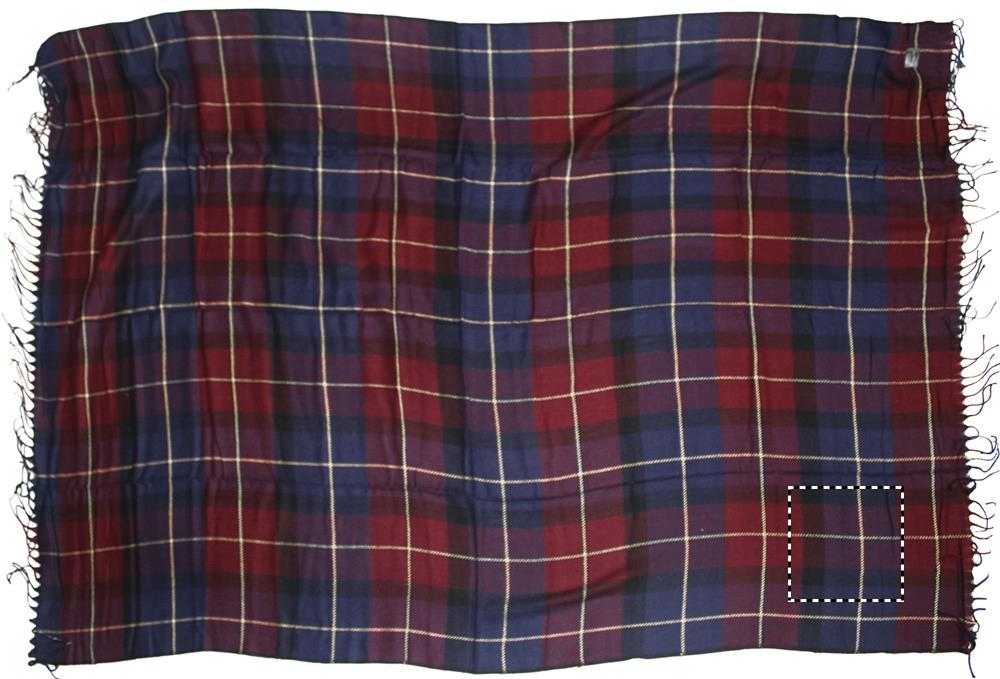 Gerollte Decke mit PVC Tragegriff. Karo-Muster. 100% Acryl.