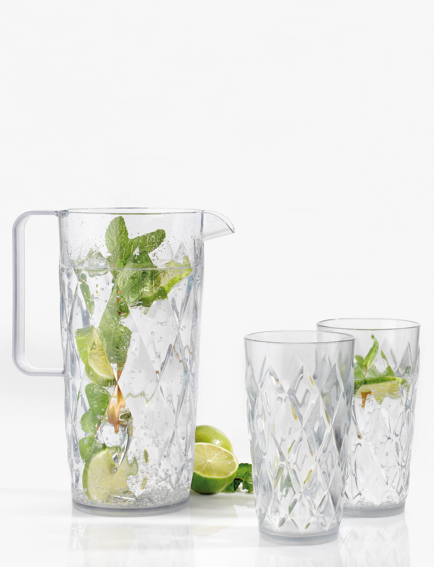 Das elegante, langstielige Trinkglas gehört zum Sommer ganz einfach dazu, denn es ist leicht, stoßfest und einfach zu transportieren, da kompakt ineinander stapelbar. Mit seiner faszinierenden Facettenoptik macht CRYSTAL 2.0 jedes Picknick und Gartenparty stilvoller und Abende auf dem Balkon zum besonders unbeschwerten Genuss.