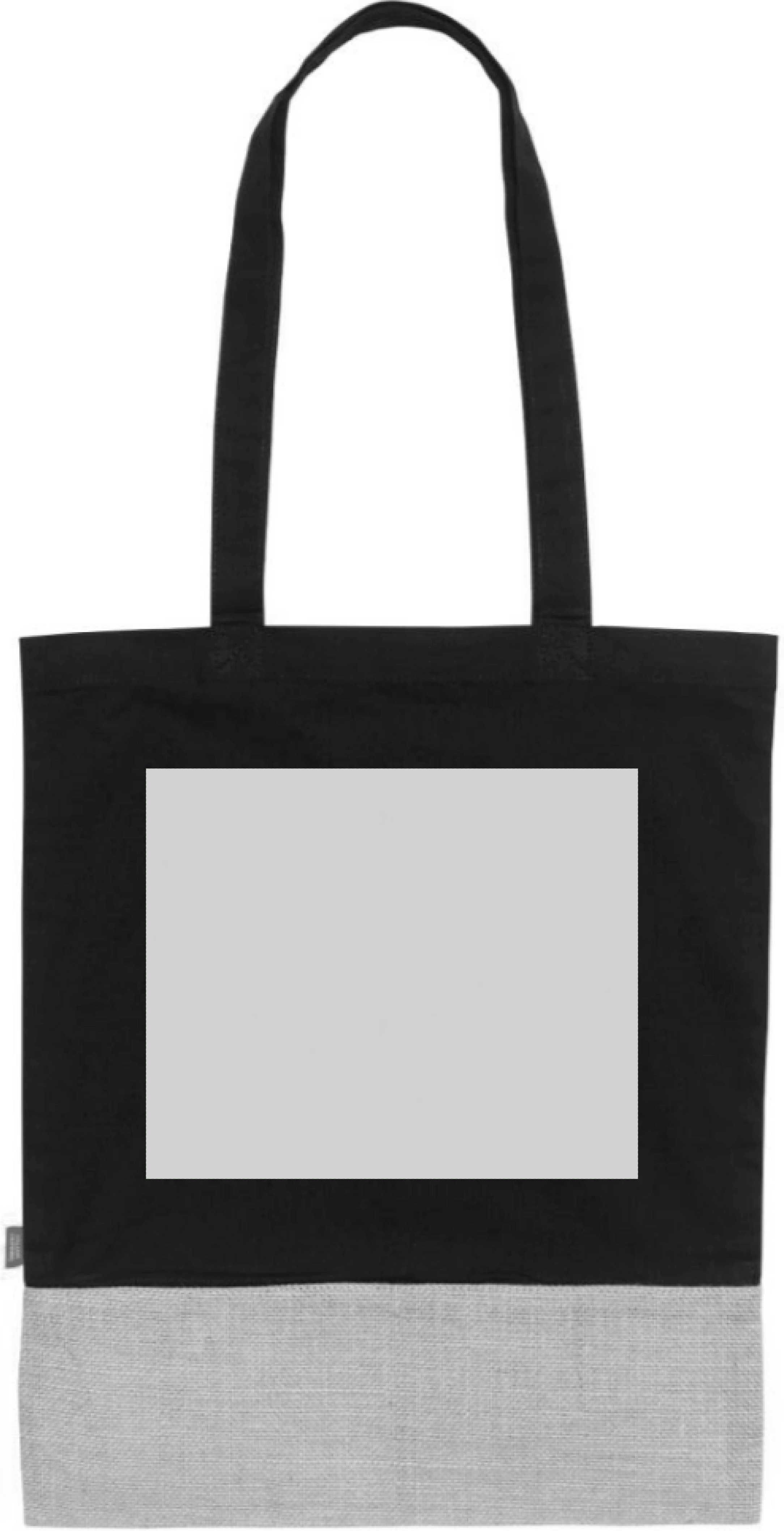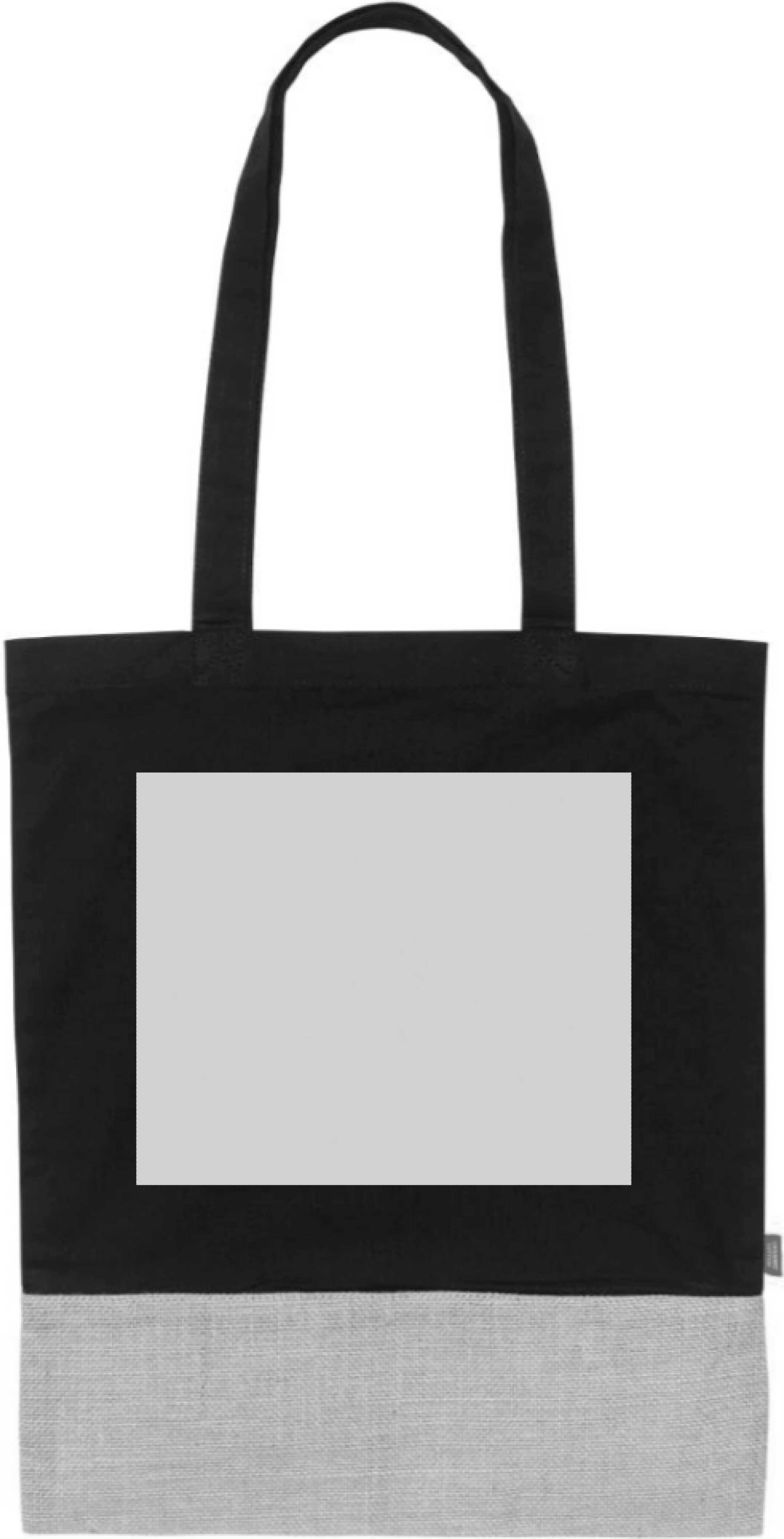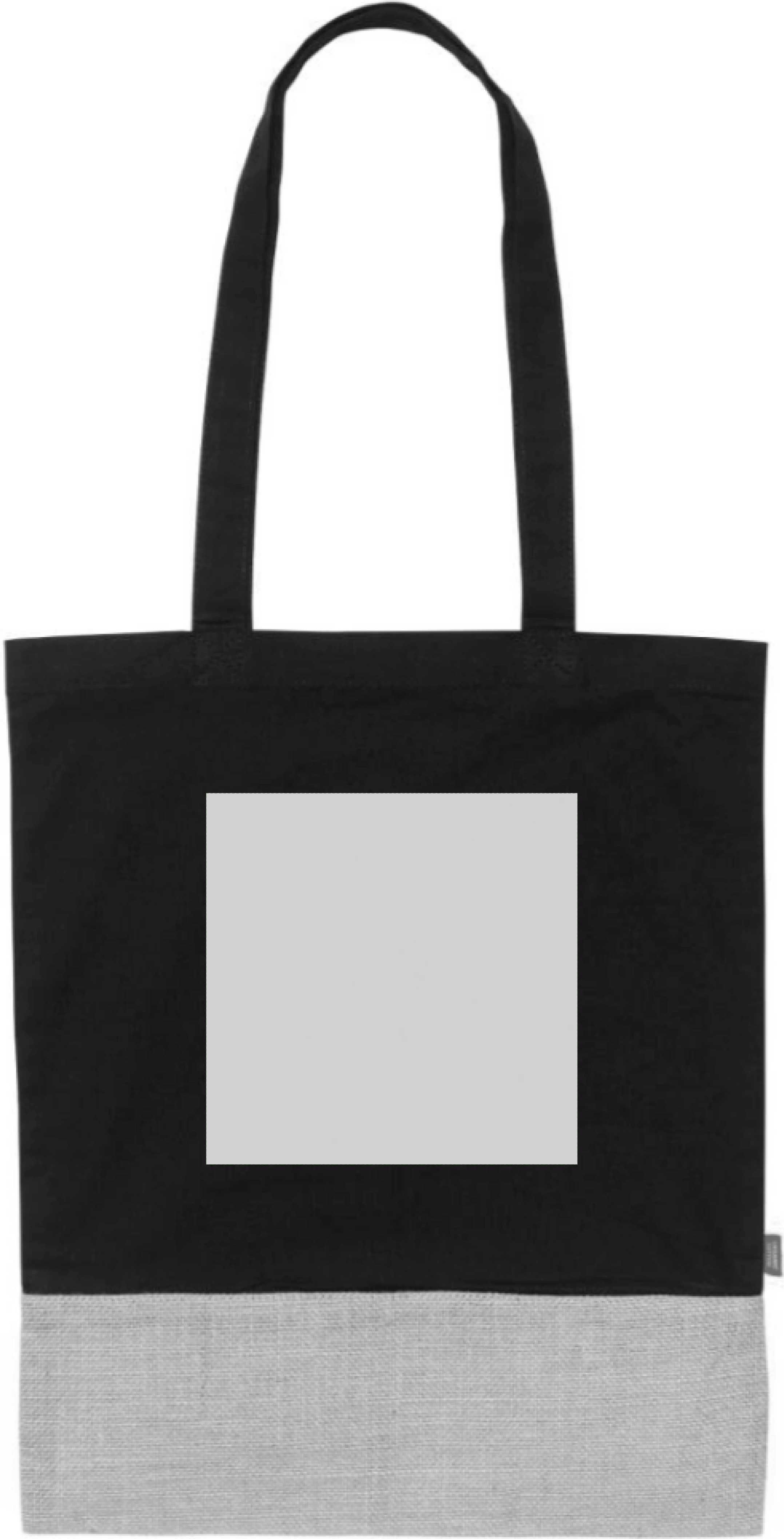 Robuste Einkaufstasche aus 100% Bio-Baumwolle (160 g/m²) kombiniert mit stabiler Jute. Mit langen Griffen. Fassungsvermögen ca. 8 Liter.
