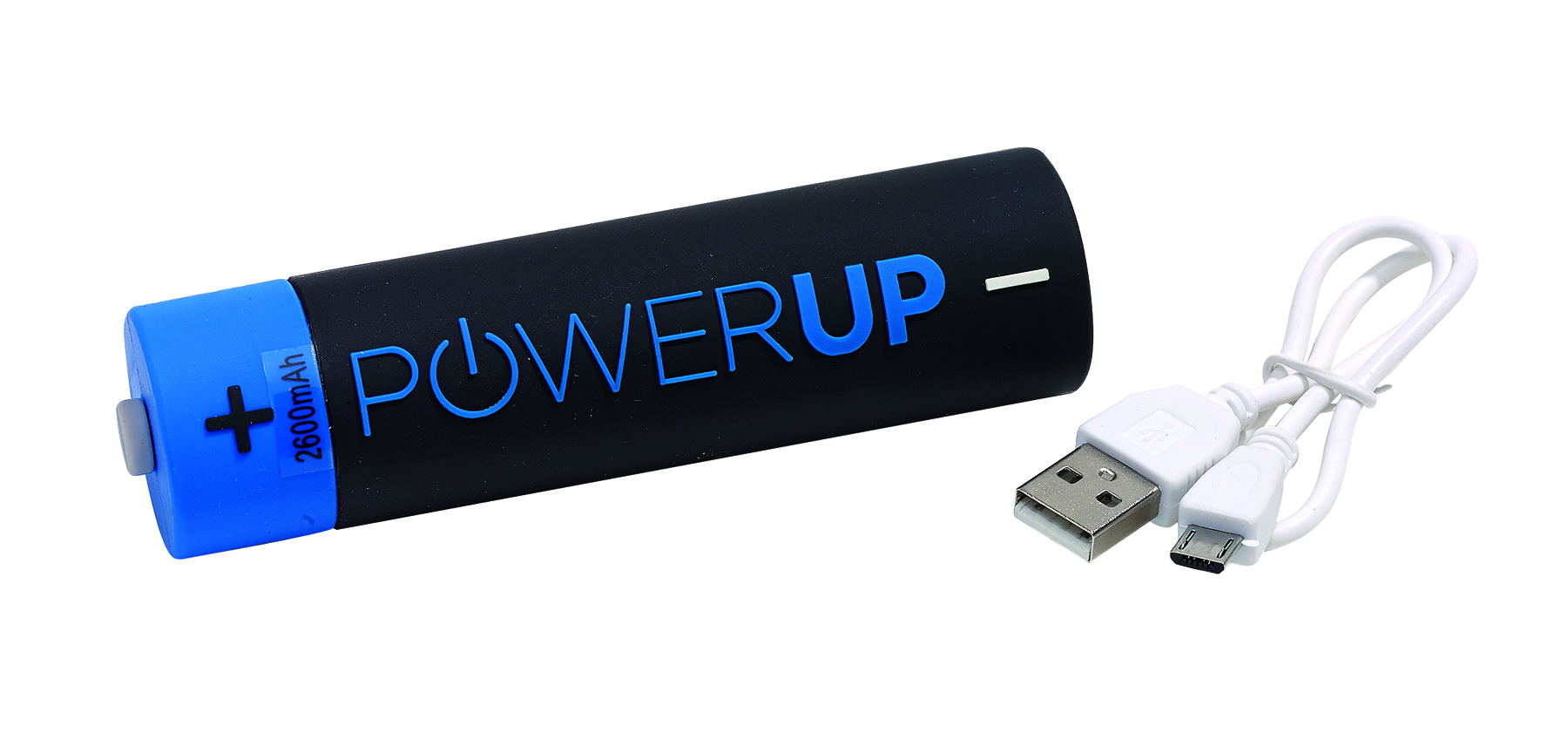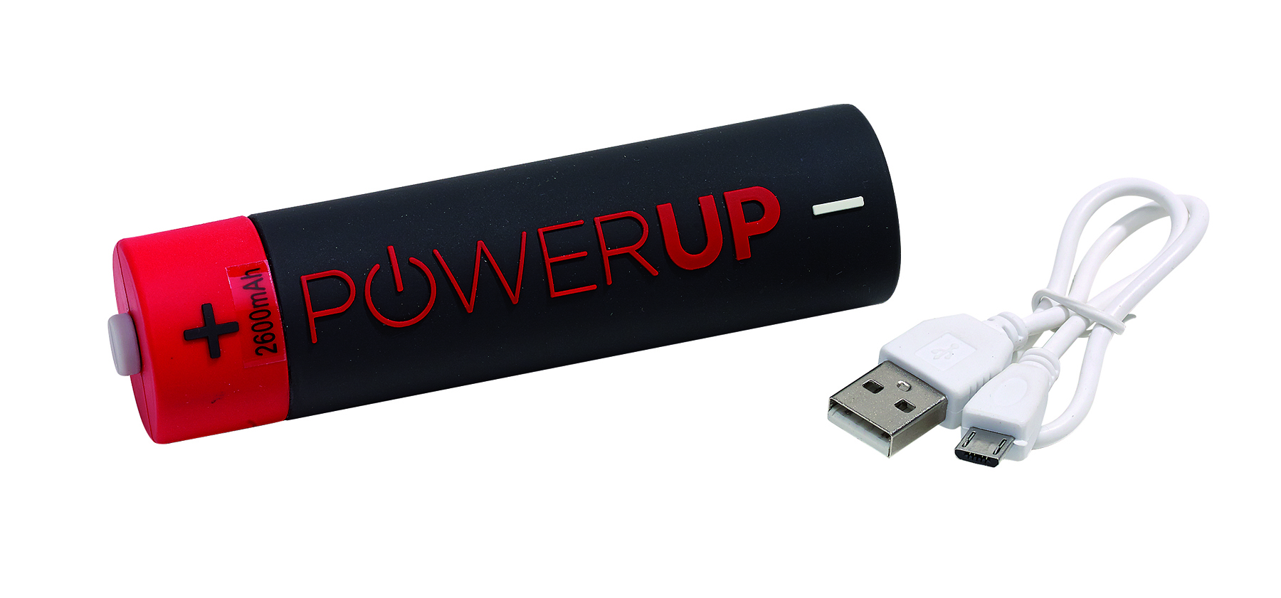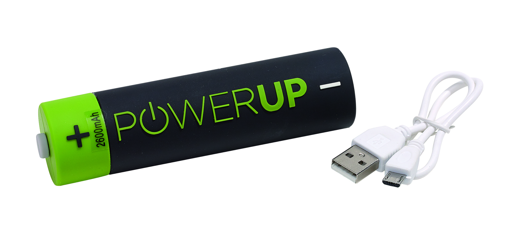 Powerbank POWER UP – die perfekte Energiereserve für unterwegs: geeignet für Smartphone, iPhone® und USB-betriebene Geräte, USB-Ladekabel mit Micro-USB-Stecker (Länge ca. 29 cm), leistungsstarker Lithium-Akku, Kapazität: 2.600 mAh, Eingangsleistung: 5V/1A, Ausgangsleitung: 5V/1A.