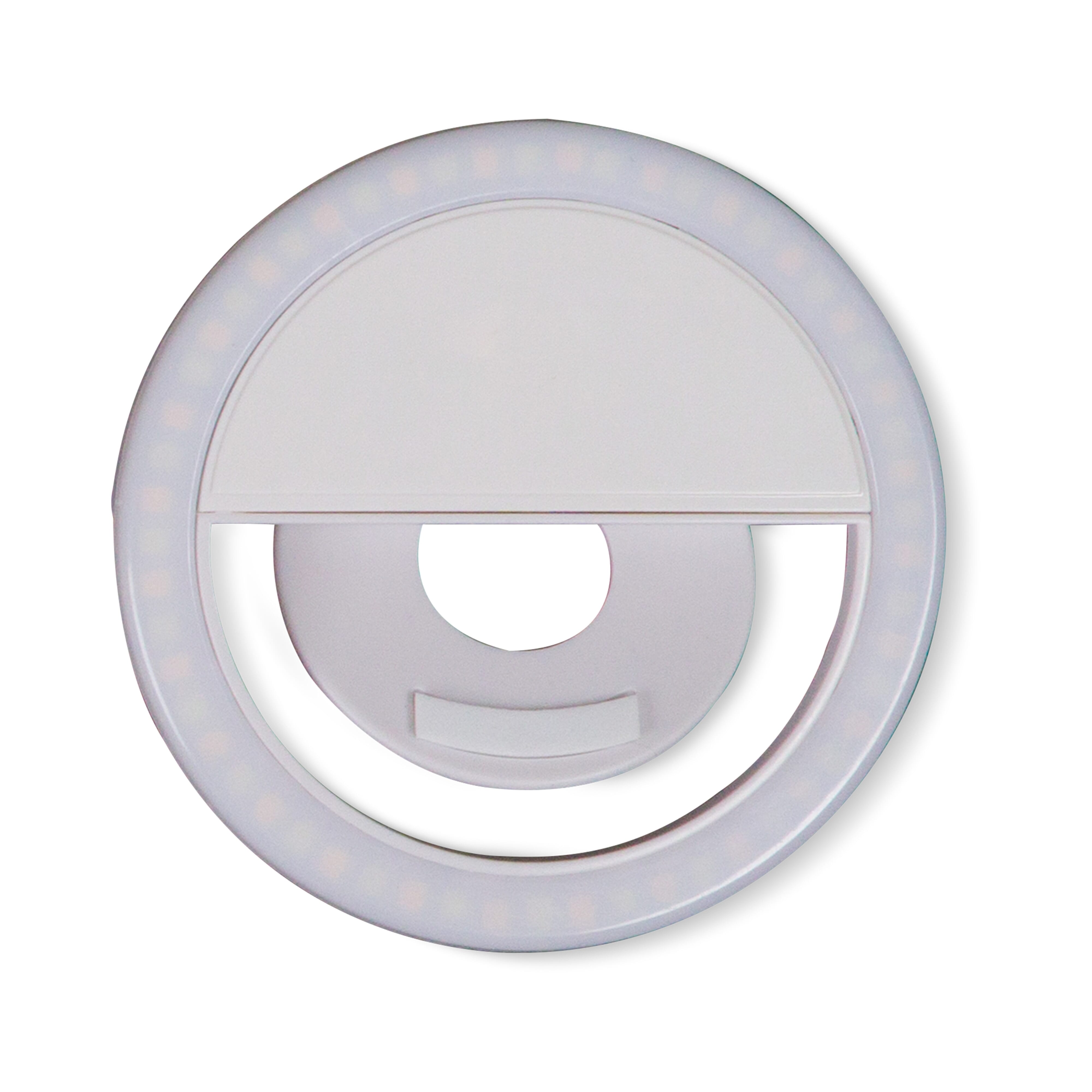 <p>Der Selfie-Ringlicht-Clip ist die perfekte Lösung für die optimale Ausleuchtung von Fotos und ist auch zum Fotografieren im Dunkeln geeignet. Das Selfie-Ringlicht besteht aus 56 LED´s und durch das Mischen von weißem und gelbem Licht können mehrere Helligkeitsstufen eingestellt werden. Der Clip lässt sich sowohl auf der Vorder- als auch auf der Rückseite des Smartphones befestigen und kann somit mit beiden Kameras verwendet werden. Dieses universelle Selfie-Ringlicht past auf jedes Smartphone und wird mit dem mitgelieferten Kabel aufgeladen. Durch seine kompakte Größe können Sie es überall hin mitnehmen.</p><ul><li>Qualität: 10-16 lm</li><li>Geschenkverpackung: Ja, Marke</li><li>Kabel: Ja, USB auf Micro-USB</li><li>LED: Ja</li><li>Batterien: Ja, Lithium Polymer</li><li>Kapazität in mAh: 200 mAh</li><li>Passende Geräte: Smartphone</li><li>Bluetooth: Nein</li><li>Verbrauch: 5 V / 0,1 A</li></ul>