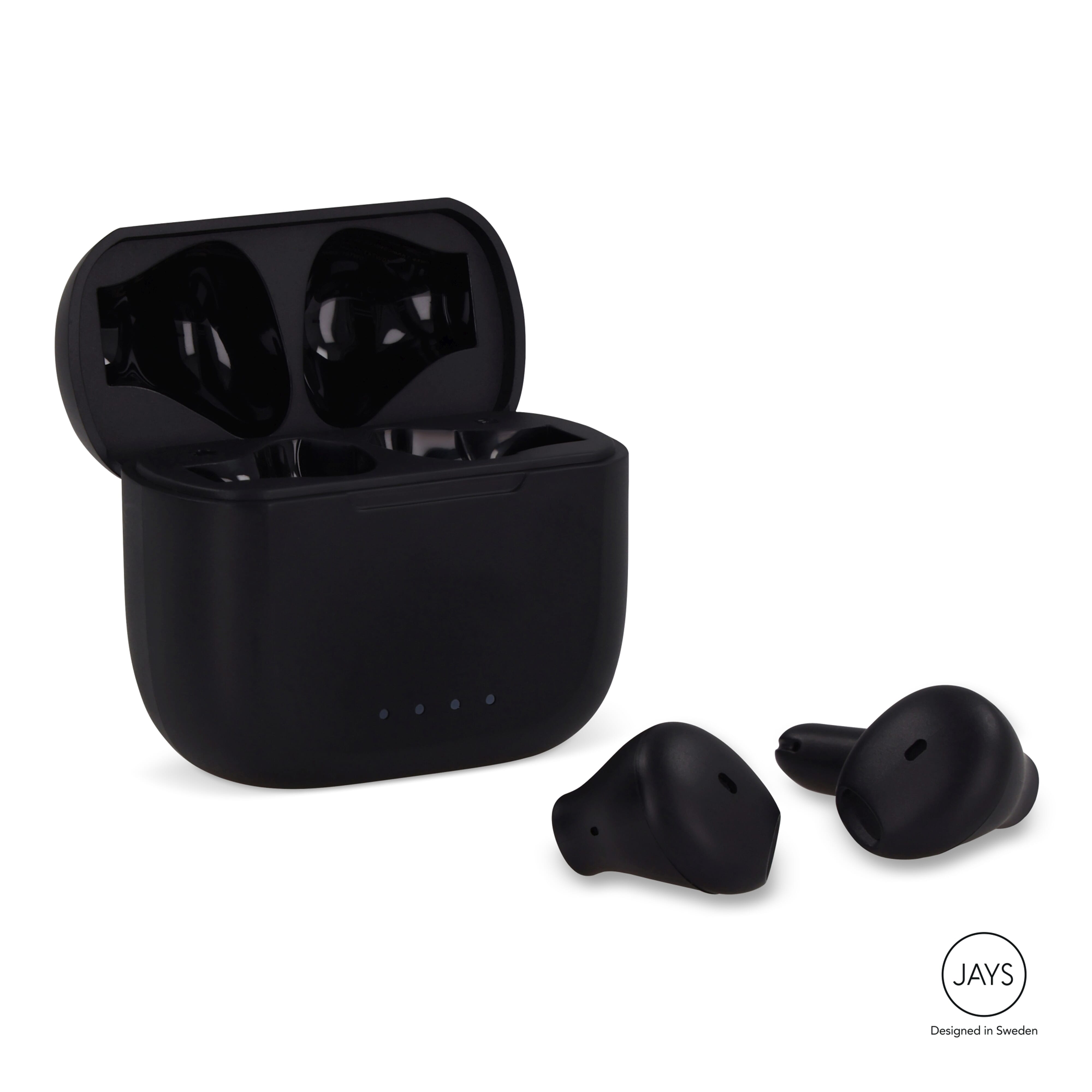 <p>Diese ergonomischen, kabellosen Ohrhörer von Jays zeichnen sich durch eine hervorragende Gesprächsqualität und einen perfekten Sitz dank der verschiedenen Silikon-Ohrstöpsel aus. Es ist mit einem hochwertigen Mikrofon für klare Gespräche ausgestattet. Bis zu 4 Stunden Spielzeit mit einer einzigen Aufladung und drei weitere Aufladungen in der Ladehülle.</p><ul><li>Geschenkverpackung: Ja</li><li>Kabel: Ja</li><li>USB-Anschlüsse: Ja</li><li>LED: Ja, 1</li><li>Batterien: Ja, Lithium-Ion</li><li>Passende Geräte: jegliches Abspielgerät mit Bluetooth</li><li>Bluetooth: Ja</li></ul>