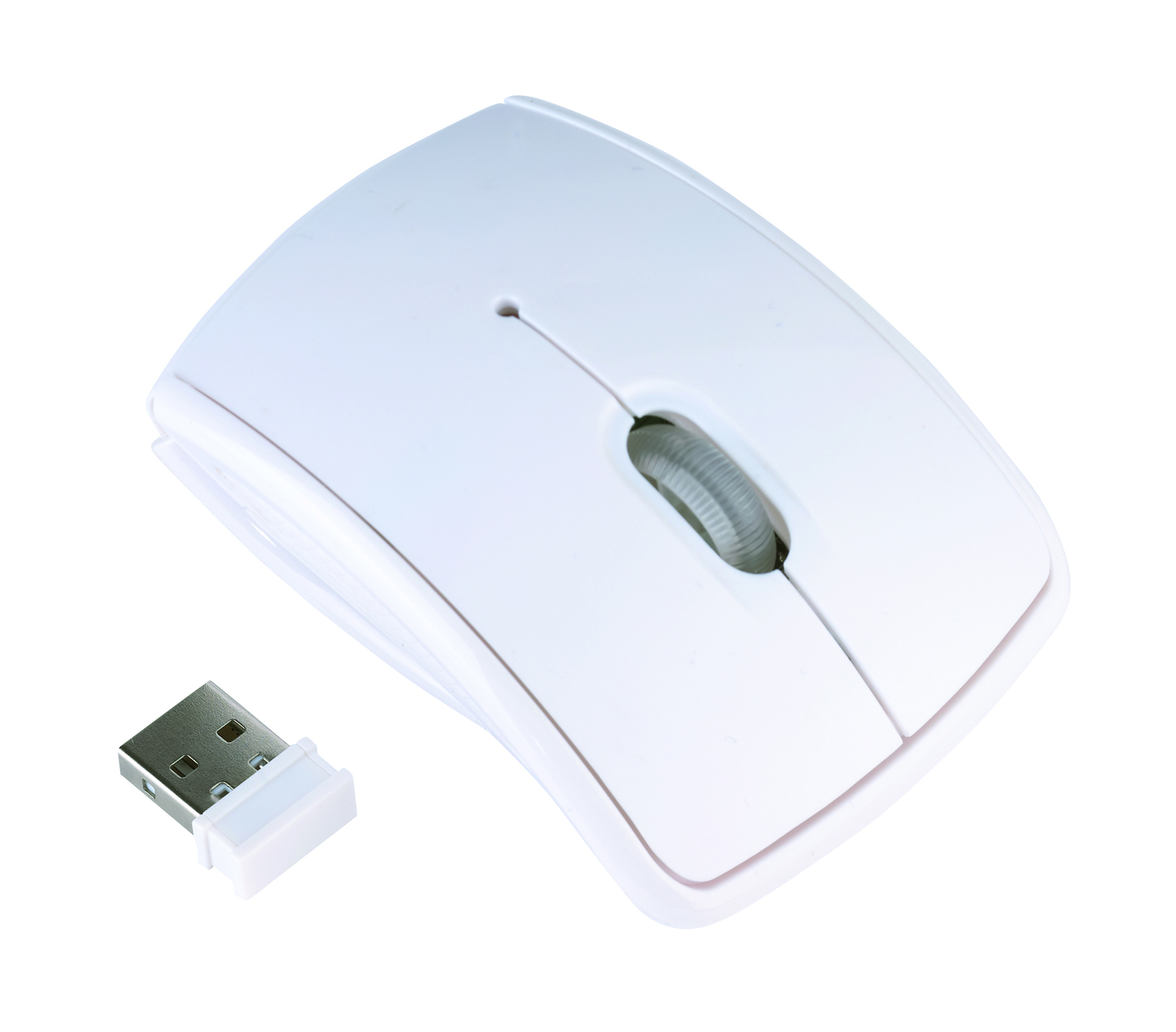 Optische Klappmaus SINUO , kabellos: Mouse mit 2 Tasten und einem Scrollrad, USB-Dongle wird mit Magnet an Unterseite des Gerätes fixiert, Auflösung 800/ 1.600 dpi, Arbeitsdistanz bis 10 m, Plug + Play (keine Software notwendig)