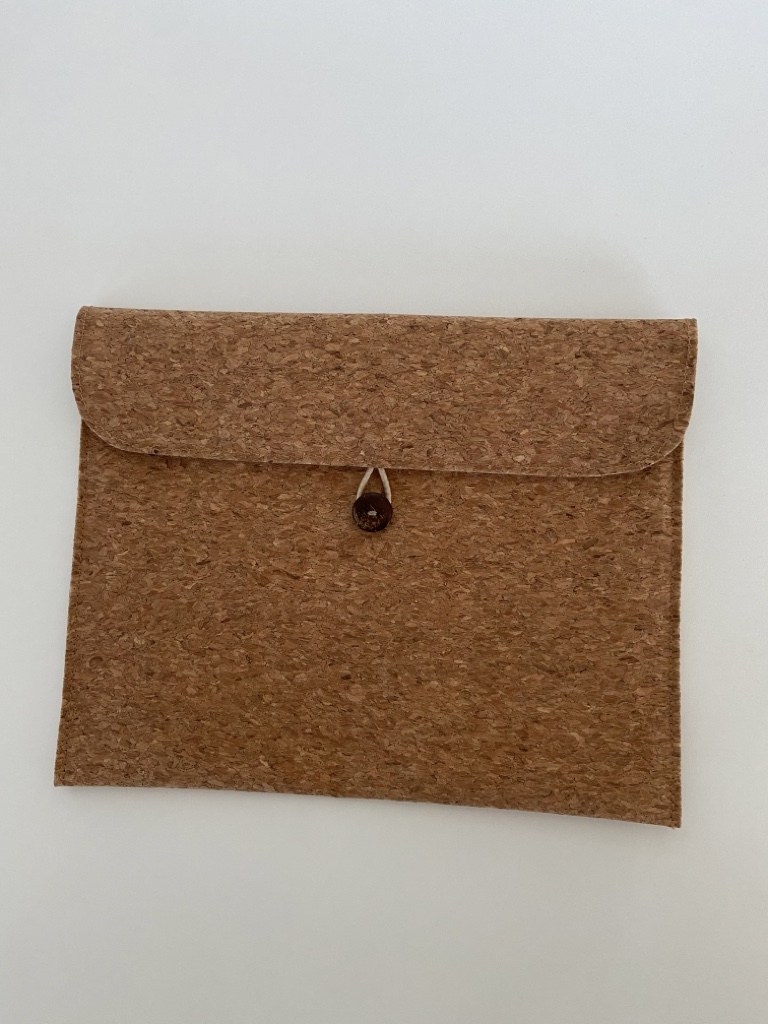 leinenfarbenem Textil mit Kork bezogen für Tablet-PCs mit einer