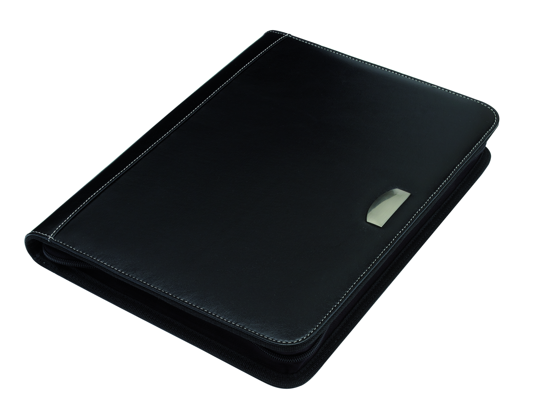 Portfolio NOBLESSE im DIN-A4-Format: mit integriertem Halter für Tablet-PCs in 3 Größen (ca. 24 x 17,5 cm, 22 x 15,5 cm, 18 x 11,5 cm), mit elastischen Befestigungsgurten, mit Samtvelours ausgeschlagen für sicheren und kratzfreien Transport, innen diverse Einsteckfächer für Visitenkarten und Notizen, Schlaufe für ein Schreibgerät, außen umlaufender Reißverschluss