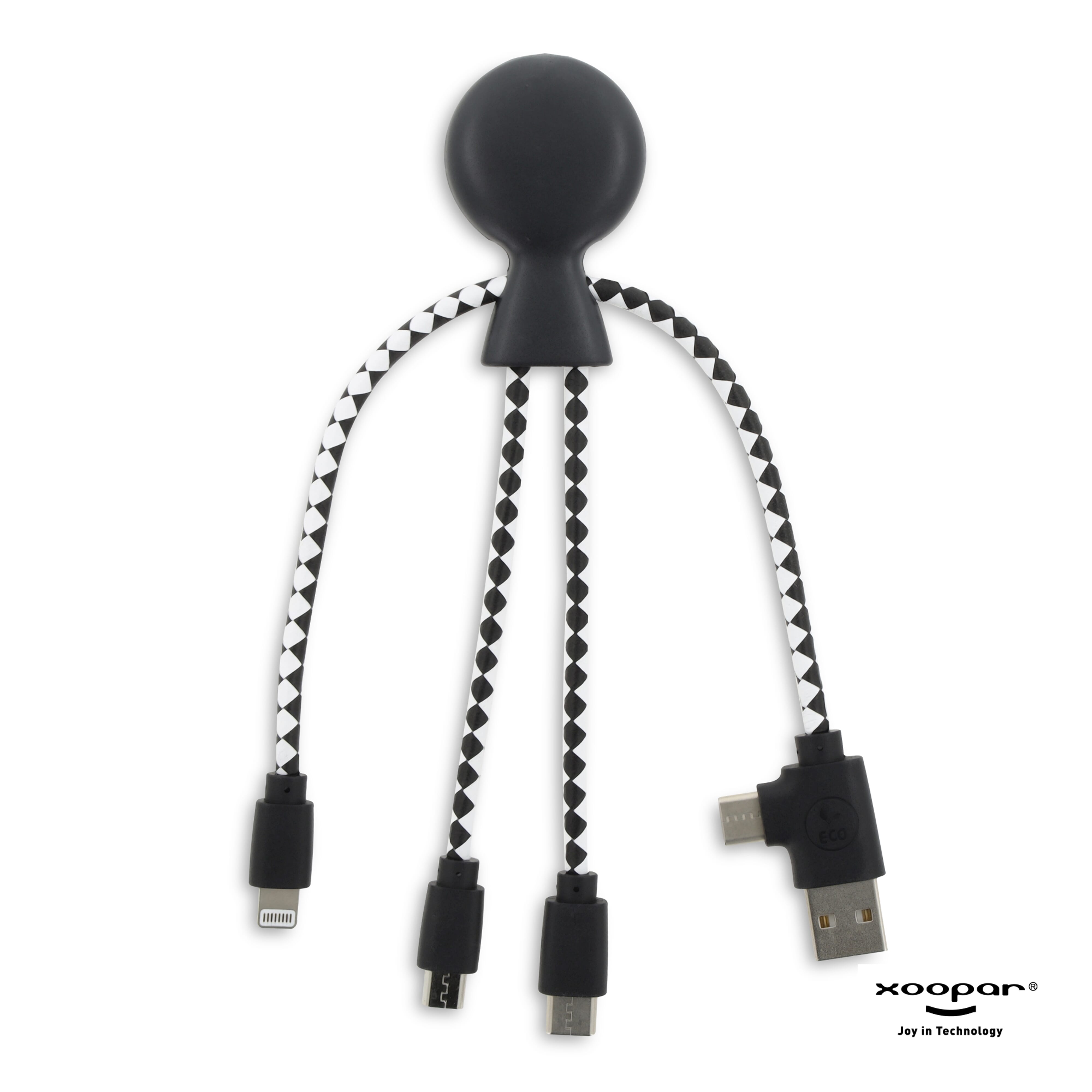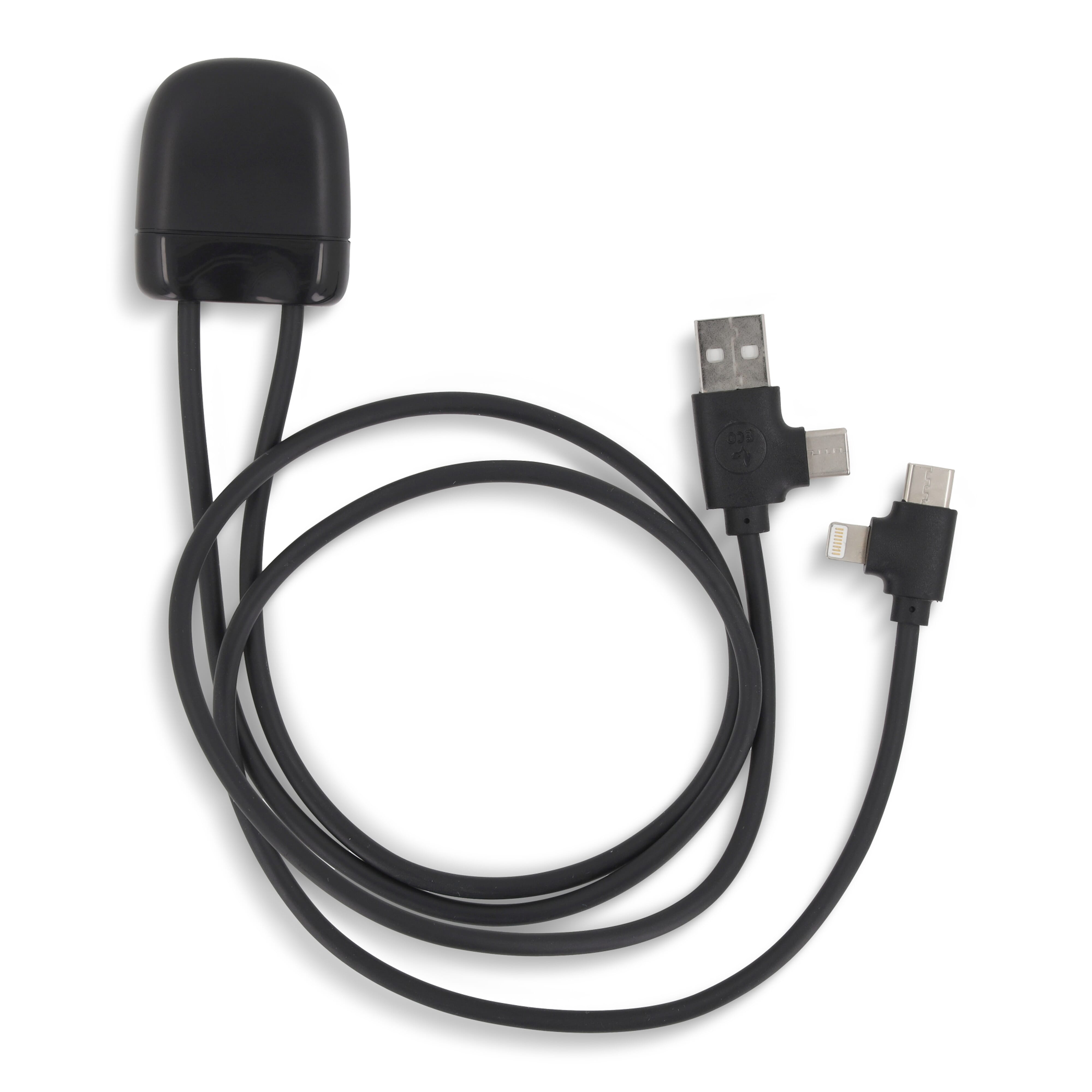 <p>Das Eco Octopus Ladekabel ist aus RPET (Kabel) und recyceltem Kunststoff (Gehäuse) hergestellt. Mit einem USB-Eingangsstecker und drei verschiedenen Steckern können Sie Ihre Geräte umweltfreundlich aufladen. Ob am Schreibtisch, im Auto, in der Tasche oder im Urlaub, dieses Multiladekabel ist immer praktisch! Der Gesamtanteil an recyceltem Material beträgt 61 %, bezogen auf das Gewicht des Artikels. Das Kabel ist in einem nachhaltigen, FSC-zertifizierten Papierumschlag verpackt.</p><ul><li>Geschenkverpackung: Ja</li><li>Kabel: Ja</li><li>Leistung: DC 5V / 2,4A</li><li>Verbrauch: 5 V / 2 A</li></ul>