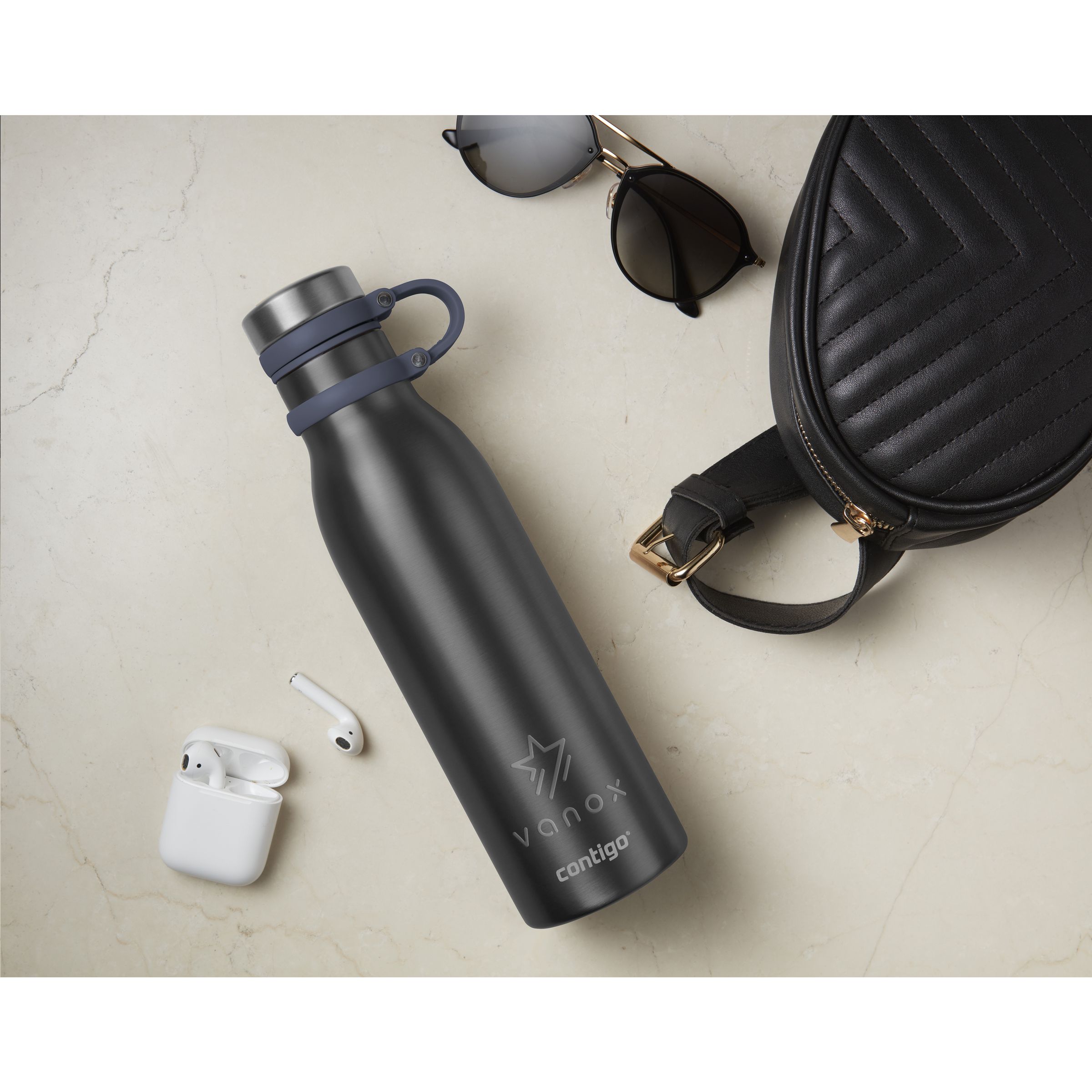 Doppelwandige, vakuumisolierte Wasserflasche/Thermoflasche aus Edelstahl. Die markante Metallic-Deckschicht macht diese Trinkflasche richtig auffällig. Der Schraubverschluss ist an einer Silikonschlaufe befestigt und rastet beim Öffnen der Flasche ein. Die THERMALOCK™-Technologie hält Getränke bis zu 24 Stunden kalt oder bis zu 10 Stunden warm. Fassungsvermögen 590 ml. LAGERBESTANDSINFORMATION: Bis zu 1.000 Stück innerhalb von 10 Arbeitstagen verfügbar. Ausnahmen vorbehalten. Contigo® der Spezialist bei Qualität, Design und Technologie. Direkt erkennbar an dem schlichten und zeitlosen Design - haltbar und robust. Die innovativen Contigo Wasserflaschen und Thermobecher sind geruchs- und geschmacksneutral und BPA-frei. Die Trinkflaschen sind mit einer Hand zu bedienen und garantiert tropfsicher, so ist die überall und jederzeit nutzbar. Mit 2 Jahre Herstellergarantie.