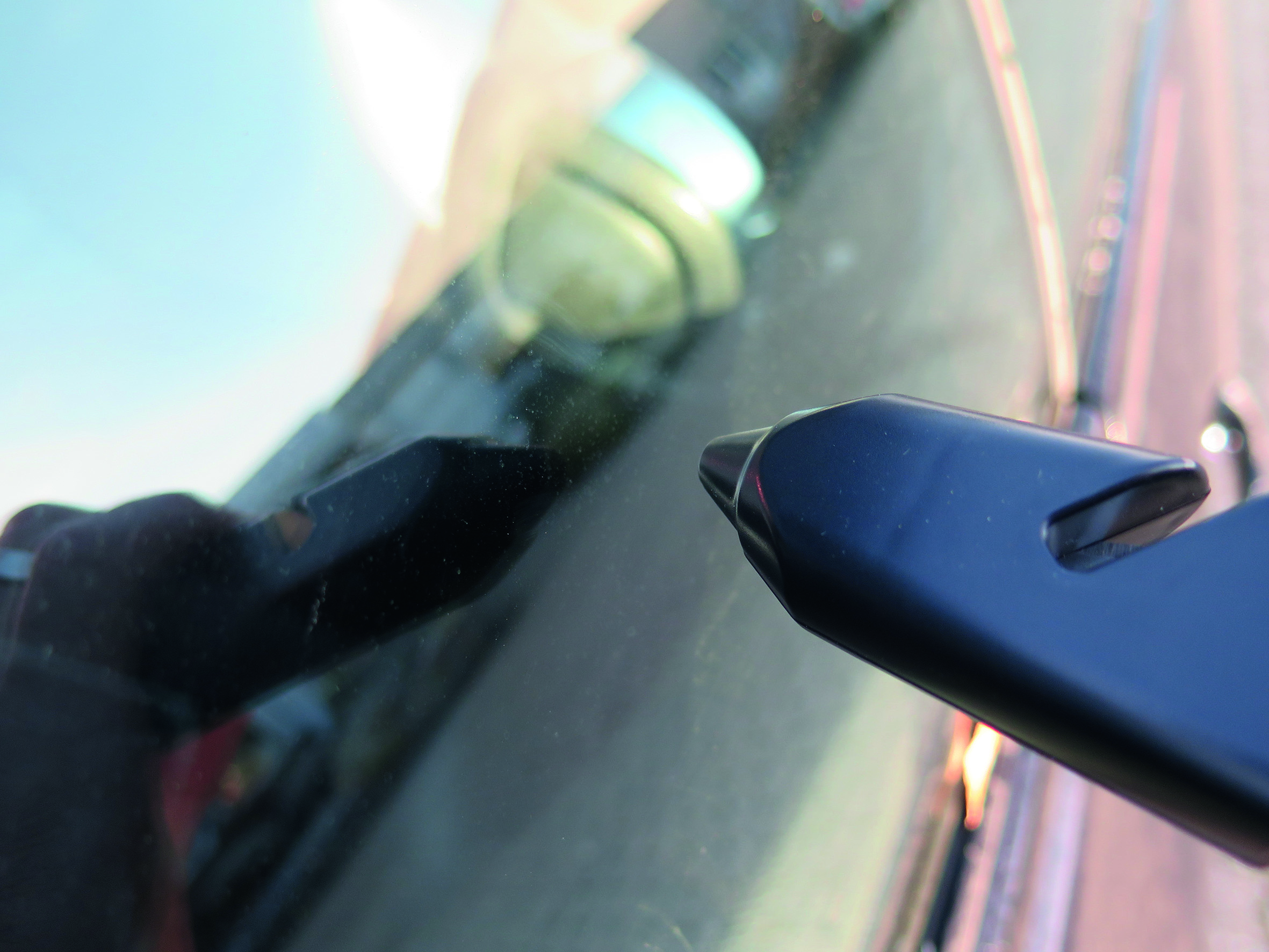 LED-beleuchteter Eiskratzer mit integriertem Gurtcutter und Nothammer im kompakten Gehäuse. VPE 100. Polybeutel mit Design-Infokarte