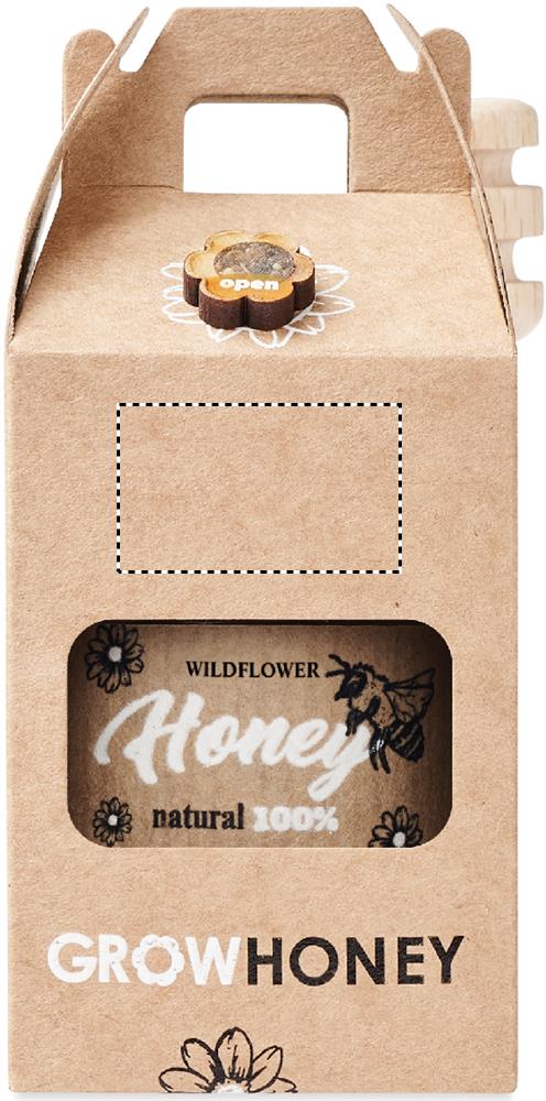 Wildblumenhonig im Glas (50 g) inkl. Honiglöffel aus Holz und Honigblumen-Samen. Verpackt in einer Schachtel aus Kraftpapier. Hergestellt in der EU.