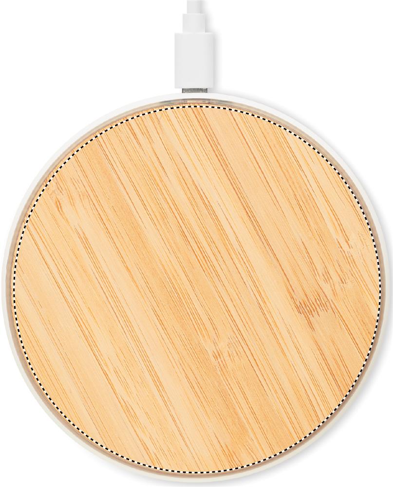 Induktive Ladestation aus ABS mit Bambus Oberfläche. Ausgang: DC 9V/1.10A (15W) für schnelles Aufladen. Verbinden Sie das Gerät mit Ihrem Computer, legen Sie das Smartphone darauf ab und laden Sie es auf. Kompatibel mit den neuesten Android Smartphones, iPhone® 8, X und neueren Modellen.