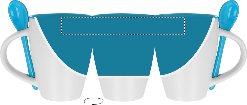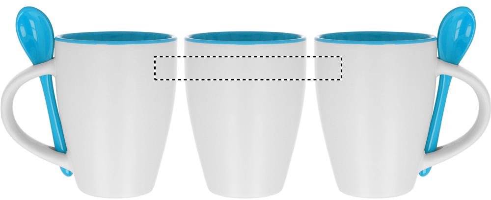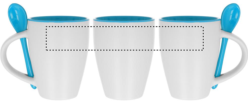 Zweifarbiger Kaffeebecher aus Keramik mit Löffel. Füllmenge: 250 ml. Nur Keramik-Transferdruck ist spülmaschinengeeignet. Verpackt in einem Karton.