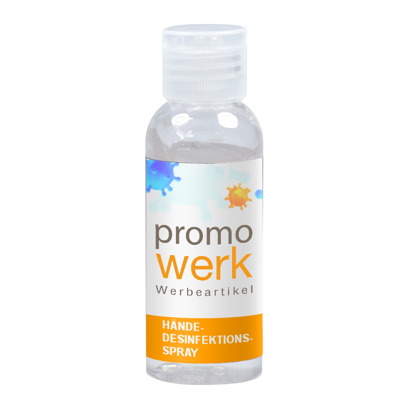 Desinfektionsmittel in praktischer Mini Flasche mit 30ml Inhalt. Das Mini Fläschchen mit viruzidem Desinfektionsgel ist abgefüllt in einer kleinen runden Flasche mit einem Klappdeckel mit Schraubverschluss. Die Flasche wird vollflächig mit einem Label beklebt. Auf diesem Etikett können Sie Ihre Werbung und Ihr Firmenlogo bedrucken. Das Label wird dann rundherum auf der Flasche aufgebracht. Ein kleiner Teil des Labels ist nicht bedruckbar, da hier die Inhaltsangaben sowie die gesetzlichen Angaben aufgebracht werden. Das Mini Fläschchen mit Hände Desinfektionsmittel ist der ideale Begleiter für Unterwegs. Das Mini Fläschchen ist ausgestattet mit einem wiederverschließbarem Klappdeckel und ist nachfüllbar. Das Desinfektionsmittel für die Hände im Mini Fläschchen ist ein ideales Werbegeschenk und praktisch überall für Ihre Kunden anwendbar. Ob im Auto, in der Bahn, im Flugzeug oder allgemein wenn man unterwegs ist, dieses Werbegeschenk wird bei Ihren Kunden sehr beliebt sein und passt in jede (Hosen) Tasche.