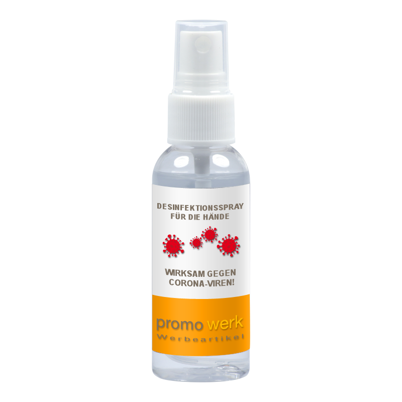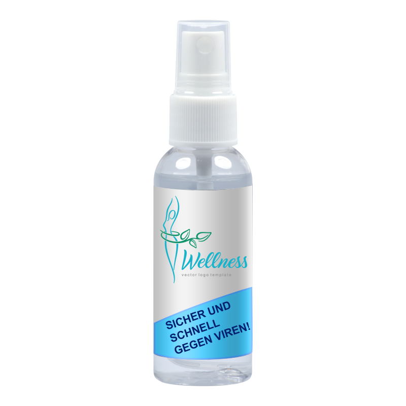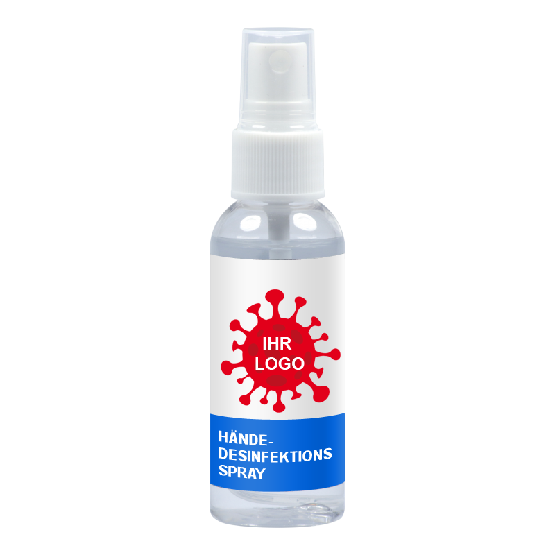 Desinfektionsmittel in praktischer Mini Flasche mit 30ml Inhalt. Das Mini Fläschchen mit viruzidem Desinfektionsspray ist abgefüllt in einer kleinen runden Flasche mit einer Sprühvorrichtung. Die Flasche wird vollflächig mit einem Label beklebt. Auf diesem Etikett können Sie Ihre Werbung und Ihr Firmenlogo bedrucken. Das Label wird dann rundherum auf der Flasche aufgebracht. Ein kleiner Teil des Labels ist nicht bedruckbar, da hier die Inhaltsangaben sowie die gesetzlichen Angaben aufgebracht werden. Das Mini Fläschchen mit Hände Desinfektionsmittel ist der ideale Begleiter für Unterwegs. Das Mini Fläschchen ist ausgestattet mit einem wiederverschließbarem Sprühverschluß und ist nachfüllbar. Desinfektionsmittel für die Hände im Mini Fläschchen sind ein ideales Werbegeschenk und praktisch überall für Ihre Kunden anwendbar. Ob im Auto, in der Bahn, im Flugzeug oder allgemein wenn man unterwegs ist, dieses Werbegeschenk wird bei Ihren Kunden sehr beliebt sein und passt in jede (Hosen) Tasche.