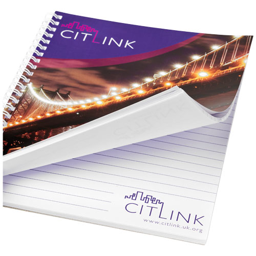 Desk-Mate® A4 Spiralnotizbuch. Dieses Notizbuch verfügt über eine weiße oder schwarze Spiralbindung, ein glänzendes Karton-Deckblatt (250g/m2) und 80g/m2-Blankopapier. Standardlieferung mit 50 Blatt, auch erhältlich mit 80 Blatt.Sie können die Seiten dieses praktischen Notizbuchs mit jedem beliebigen Design gestalten - ob liniertes, kariertes oder gepunktetes Papier - alles ist möglich!