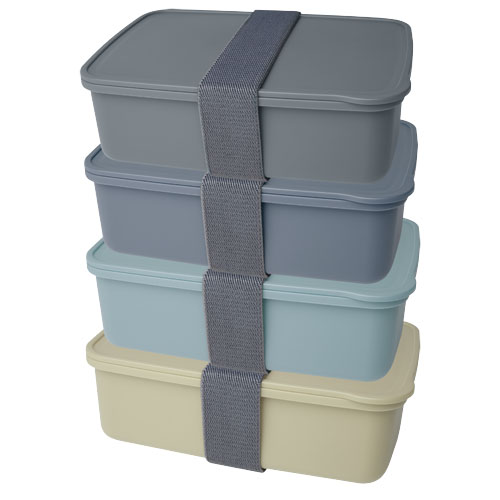 Die 800 ml-Dovi-Lunchbox besteht zu 100 % aus recyceltem Kunststoff und ist damit eine nachhaltige und trendige Wahl. Der Deckel ist mit einem Gummibandverschluss versehen, der ihn auch unterwegs sicher hält.
