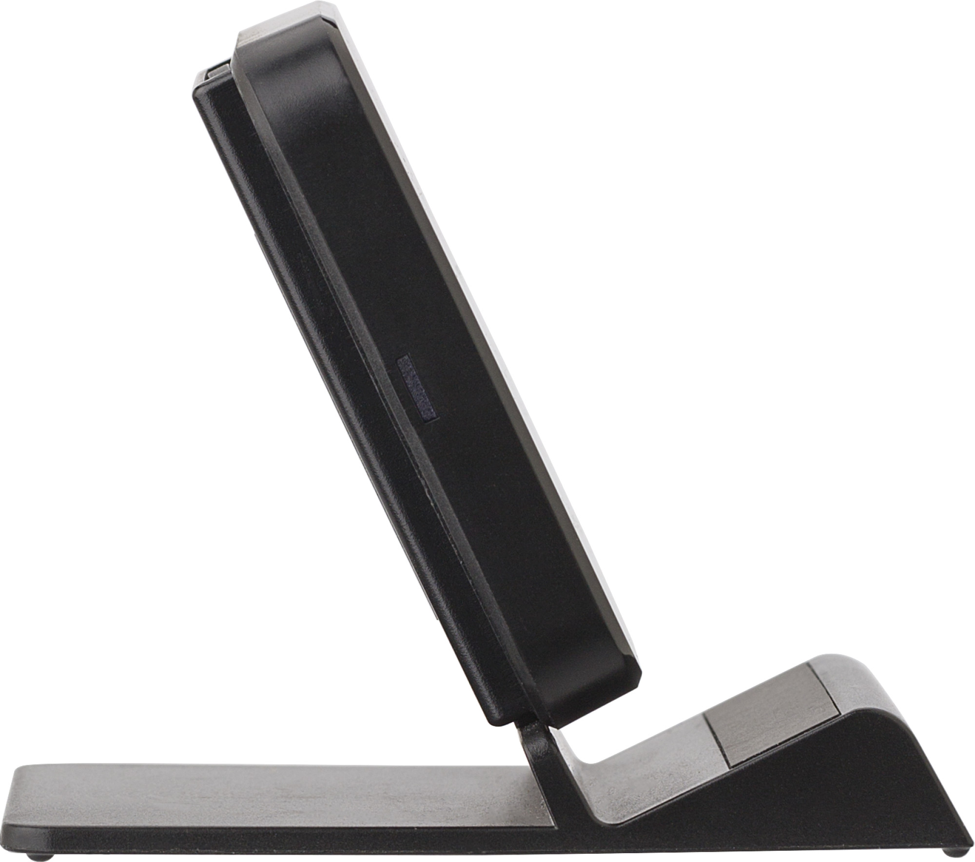 Drahtloses Ladegerät und Telefonständer aus Kunststoff. Das Ladepad ist in der Höhe verstellbar. Der Ständer ist sowohl für den Hoch- als auch für den Querformatmodus geeignet. Wiederaufladbar über Micro-USB-Anschluss. Eingang: 5V2A/9V2A, Ausgang: 5V1,3A/9V1,2A.