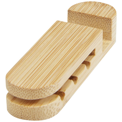 Kabelmanager aus Bambus, für ordentliche, aufgeräumte Kabel. Dient auch als Telefonständer und ist damit das perfekte Schreibtischzubehör. Größe 90 x 24 x 18 mm. Geliefert in einer Geschenkbox aus nachhaltigem Material.