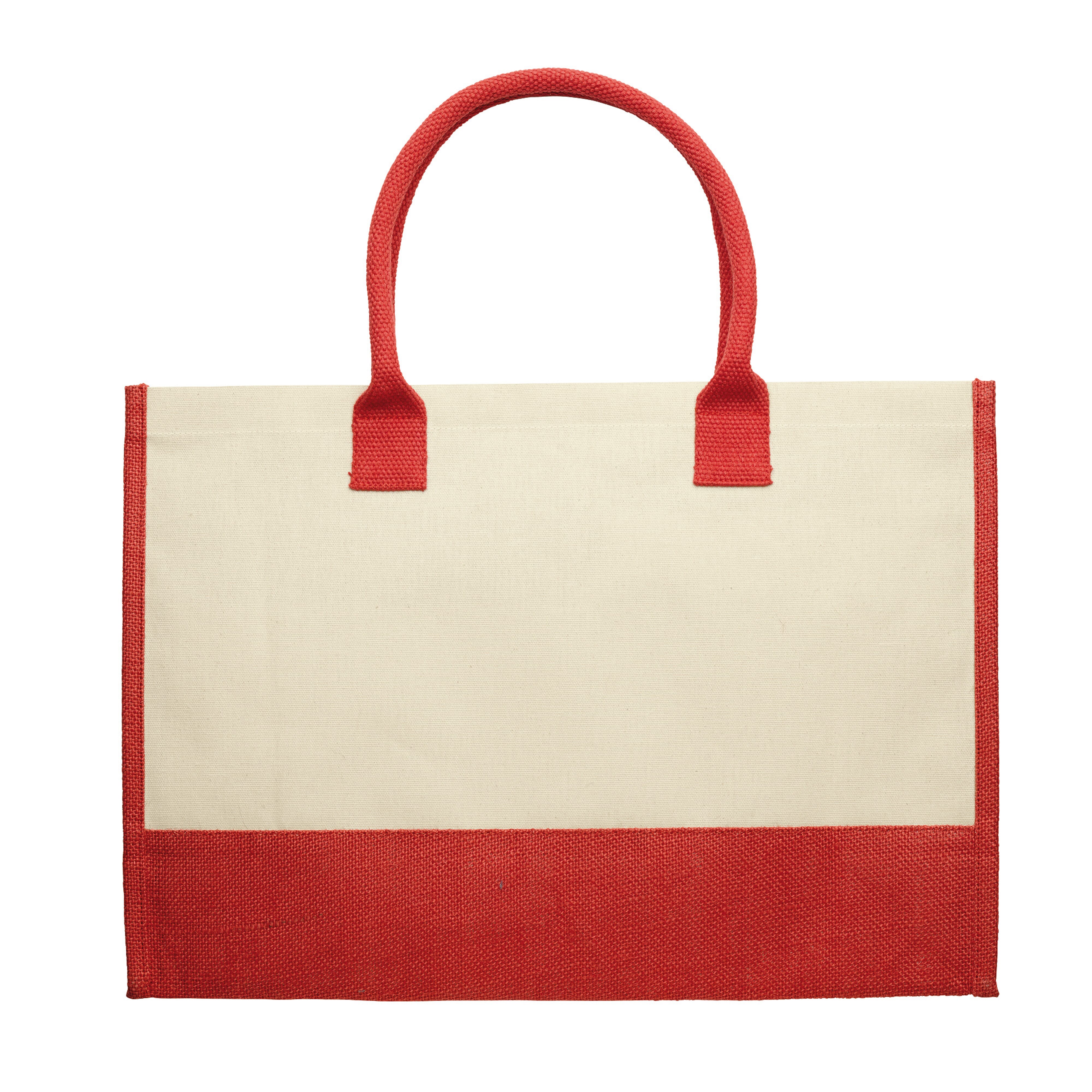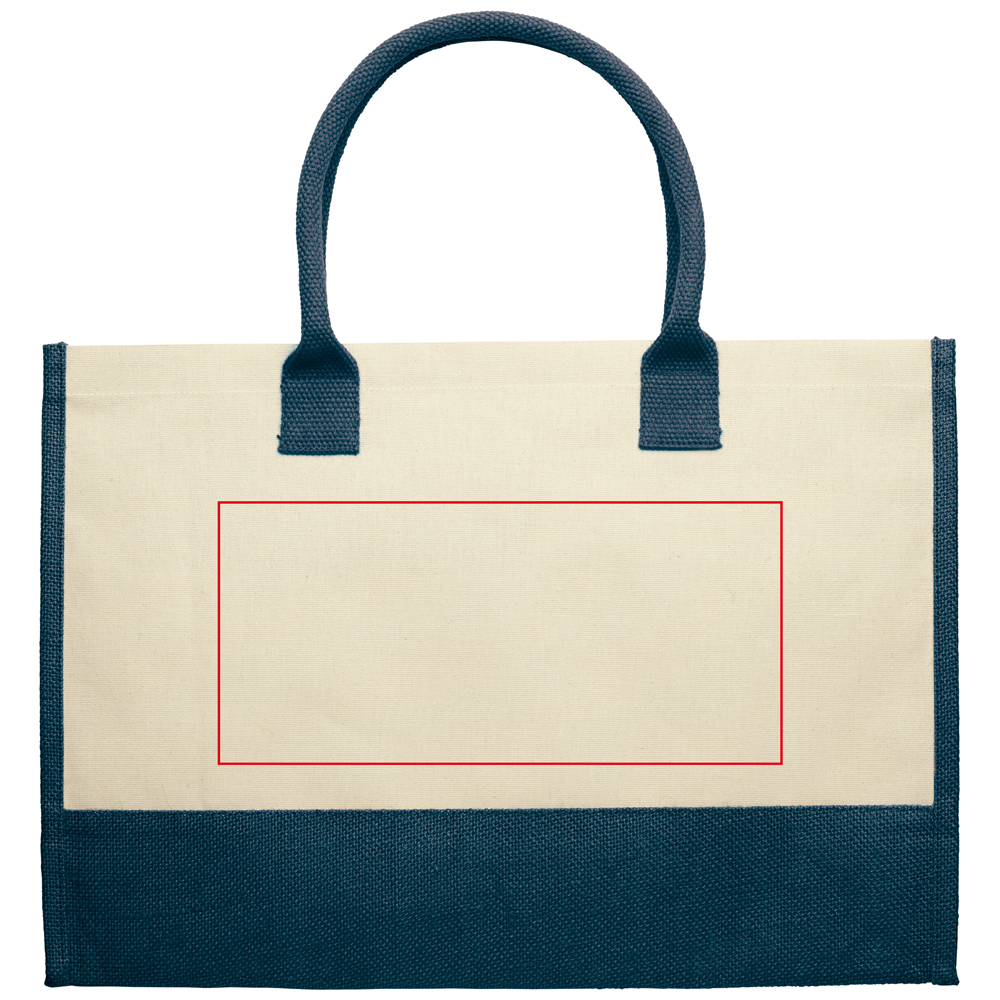 Solide Einkaufstasche aus einem schönen Mix von Jute und Canvas. Mit Griffen aus Baumwolle.