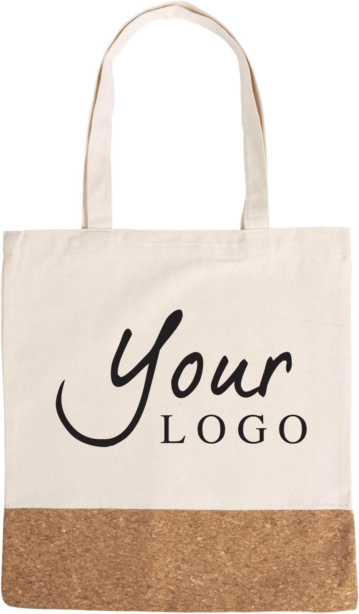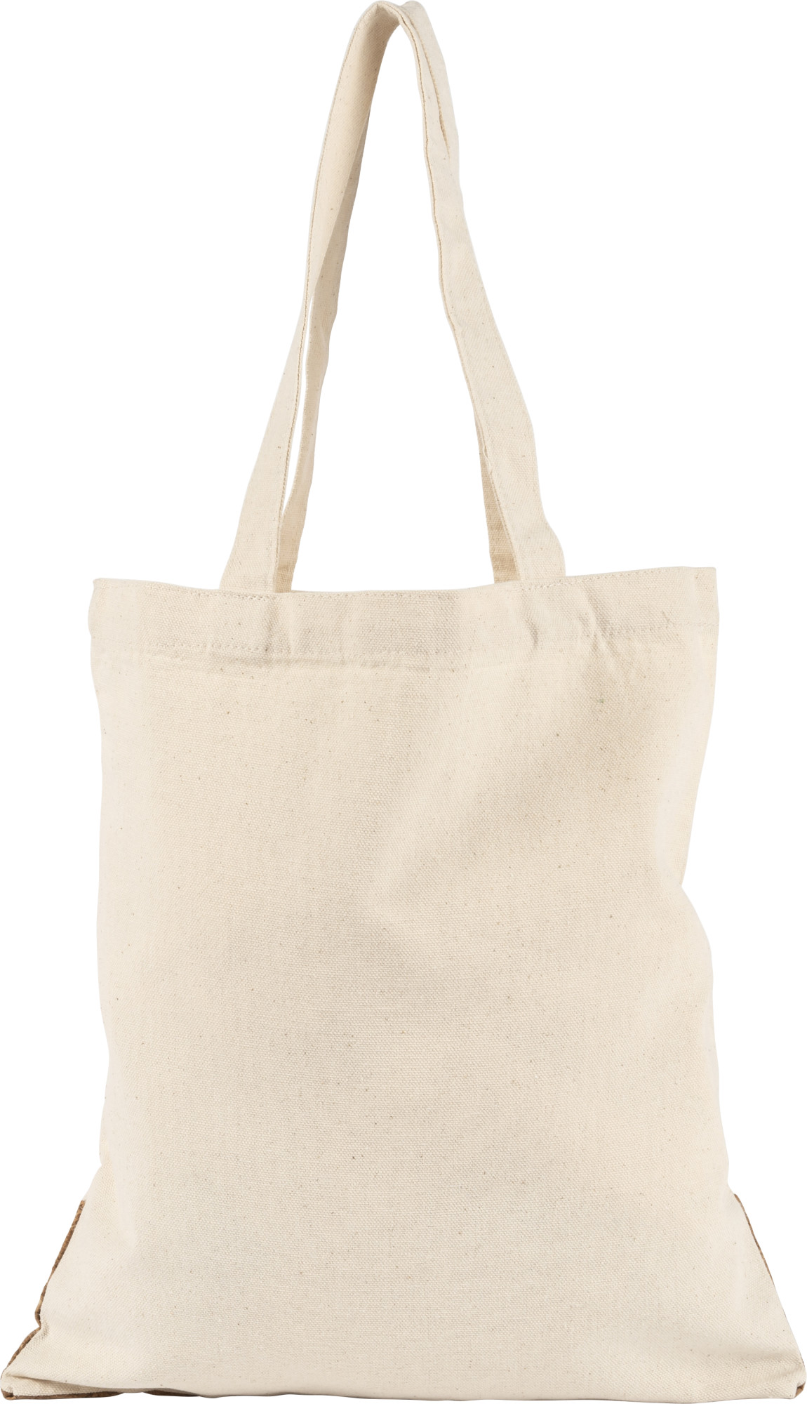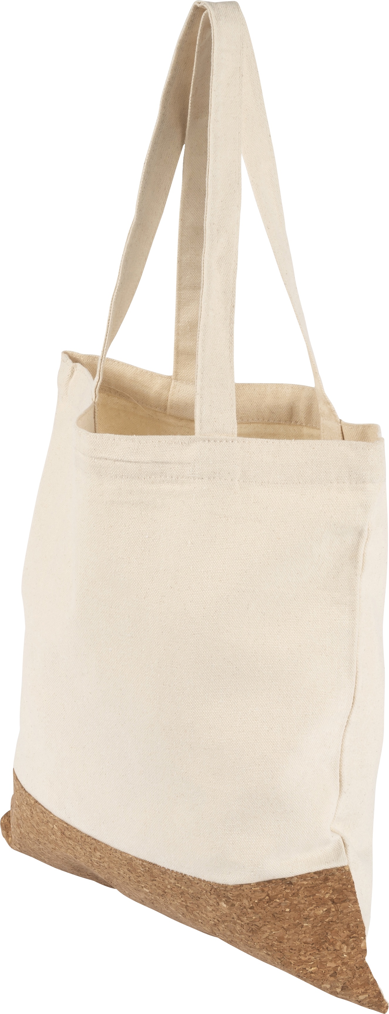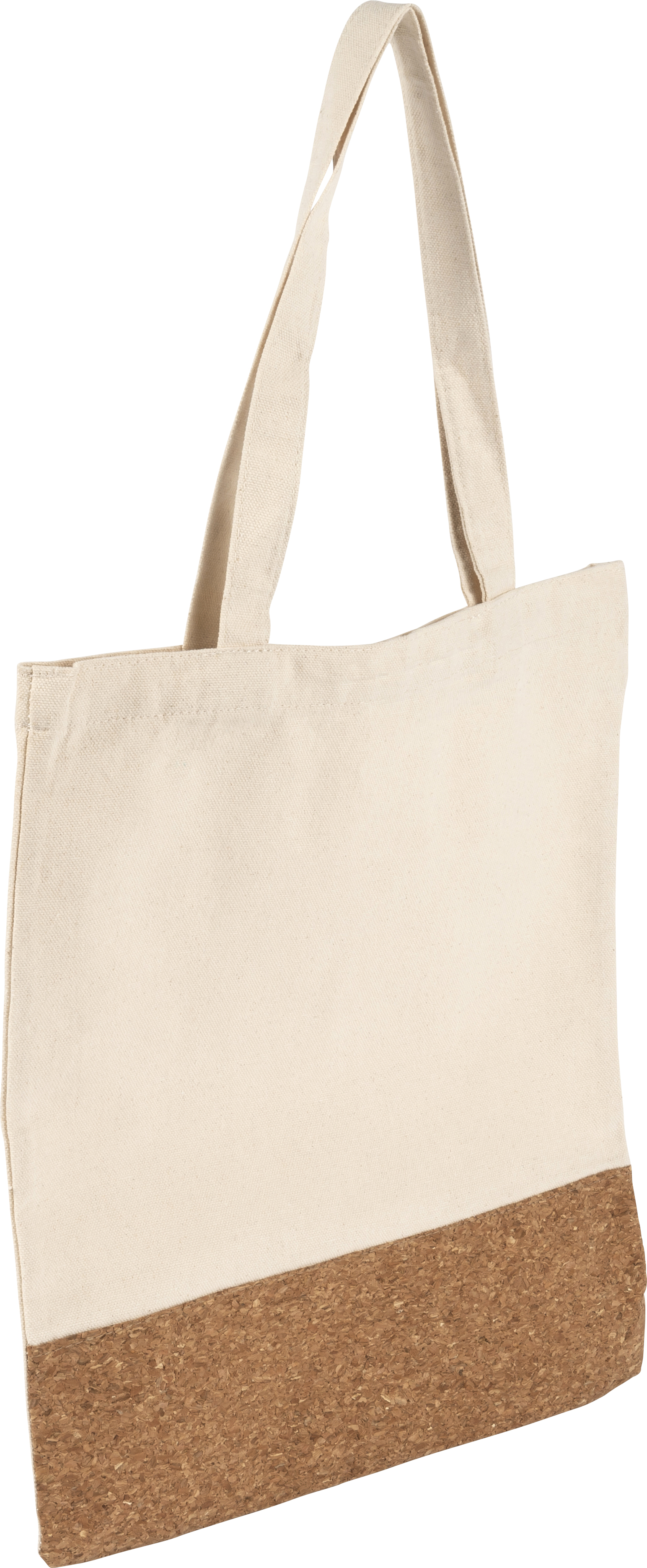 Einkaufstasche “Klaus“ aus Baumwolle (280 g), teilweise in Korkoptik. Die Träger sind 58 cm lang.