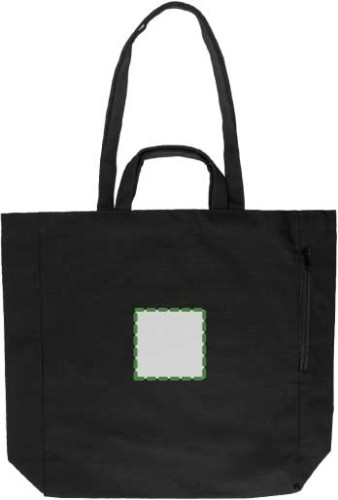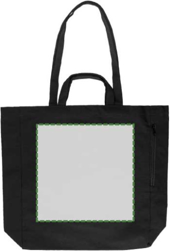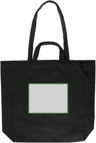 Einkaufstasche aus recycelter Baumwolle mit kurzen und langen Griffen. Tasche mit Reißverschluss an der Seite.