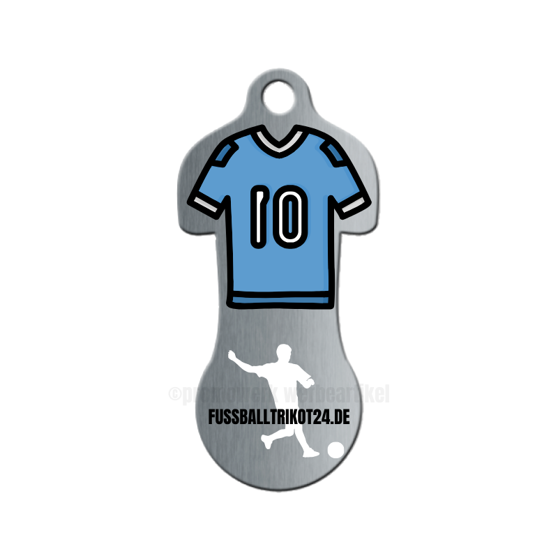 Praktischer Einkaufswagenlöser aus Metall in Form eines Trikots. Einkaufswagenlöser aus Metall mit Logo - Als Werbeartikel einsetzbar. Einfach in der Anwendung zum Lösen der Einkaufswagen im Supermarkt. Der Einkaufswagenlöser aus Metall wird genau wie der Einkaufswagenchip mit Ihrer Werbung auch in die Vorrichtung am Einkaufswagen gesteckt. Allerdings kann der Einkaufswagenlöser im Gegensatz zum Einkaufswagenchip direkt wieder abgezogen werden. Der sofort abziehbare Einkaufswagenlöser erleichtert das ständige Suchen nach entsprechendem Kleingeld. Der Einkaufswagenlöser Metall mit Logo als Giveaway für Ihre Kunden muss nicht in der Halterung stecken bleiben. Er wird direkt nach dem Lösen des Einkaufswagens abgezogen und kann wieder in der Tasche verstaut werden. Die sehr flache Form des Einkaufswagenentrieglers nimmt so auch nicht viel Platz in Anspruch. Beliebt ist der Einkaufswagenlöser als Schlüsselanhänger. So ist der Schlüsselanhänger Einkaufswagenlöser immer griffbereit, wenn er benötigt wird. Ihre Werbung bzw. Ihr Firmenlogo wird mittels eines 3-D Aufklebers bzw. Doming auf die gesamte Fläche angepasst an die Form des Einkaufswagenlösers aufgebracht. Das Logo wird hierbei zunächst im Digitaldruck auf Folienaufkleber gedruckt und danach mit einer Schicht flüssigem, kristallklarem Kunstharz überzogen. Nach dem Trockenvorgang zeigt sich der 3-D Aufkleber mit Ihrem Firmenlogo in seiner vollen Eleganz. Die Kunstharzbeschichtung sorgt nicht nur für eine tolle Optik Ihrer Werbung, sondern dient auch als Schutz und steigert die Langlebigkeit des Artikels. Hierbei können sowohl ein- oder mehrfarbige Logos als auch Bildmotive als Firmelogo umgesetzt werden. Damit der Werbeartikel Einkaufswagenlöser als Werbegeschenk auch vollends zur Geltung kommt, wird der Einkaufswagenlöser auf einer in Karte etwa in der Größe einer Visitenkarte aufgebracht und mit einer Folie verschweißt. Der Vorteil ist, dass diese Trägerkarte auch als Visitenkarte genutzt werden kann, da die Gestaltung individuell in Ihrem Wunschdesign erfolgt. Dies ist schon im Preis des Einkaufswagenlösers inbegriffen. Natürlich bieten wir hier auch viele Standardmotive der Trägerkarte an, die verwendet werden können. Rückseitengestaltung: Der Einkaufswagenauslöser kann auf der Rückseite mit folgenden Optionen geliefert werden. 1. Mit ihrem individuellen Logo 2. Neutral ( Rückseite wäre dann Edelstahl gebürstet ) 3. Mit einer Standard Motivlösung. Hierbei wird eine Bedienungsanleitung mit Einkaufswagen-Symbol zum einfachen Verständnis aufgebracht.