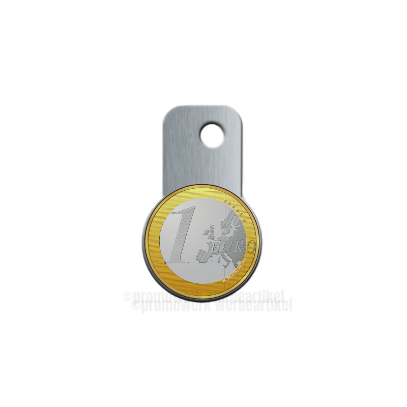 Kleiner, handlicher Einkaufswagenlöser aus Metall zur dauerhaften Anwendung und zum schnellen Gebrauch. Einkaufswagenlöser aus Metall mit Logo - Als Werbeartikel einsetzbar. Einfach in der Anwendung zum Lösen der Einkaufswagen im Supermarkt. Der Einkaufswagenlöser aus Metall wird genau wie der Einkaufswagenchip mit Ihrer Werbung auch in die Vorrichtung am Einkaufswagen gesteckt. Allerdings kann der Einkaufswagenlöser im Gegensatz zum Einkaufswagenchip direkt wieder abgezogen werden. Der sofort abziehbare Einkaufswagenlöser erleichtert das ständige Suchen nach entsprechendem Kleingeld. Der Einkaufswagenlöser Metall mit Logo als Giveaway für Ihre Kunden muss nicht in der Halterung stecken bleiben. Er wird direkt nach dem Lösen des Einkaufswagens abgezogen und kann wieder in der Tasche verstaut werden. Die sehr flache Form des Einkaufswagenentrieglers nimmt so auch nicht viel Platz in Anspruch. Beliebt ist der Einkaufswagenlöser als Schlüsselanhänger. So ist der Schlüsselanhänger Einkaufswagenlöser immer griffbereit, wenn er benötigt wird. Ihre Werbung bzw. Ihr Firmenlogo wird mittels eines 3-D Aufklebers bzw. Doming auf die gesamte Fläche angepasst an die Form des Einkaufswagenlösers aufgebracht. Das Logo wird hierbei zunächst im Digitaldruck auf Folienaufkleber gedruckt und danach mit einer Schicht flüssigem, kristallklarem Kunstharz überzogen. Nach dem Trockenvorgang zeigt sich der 3-D Aufkleber mit Ihrem Firmenlogo in seiner vollen Eleganz. Die Kunstharzbeschichtung sorgt nicht nur für eine tolle Optik Ihrer Werbung, sondern dient auch als Schutz und steigert die Langlebigkeit des Artikels. Hierbei können sowohl ein- oder mehrfarbige Logos als auch Bildmotive als Firmelogo umgesetzt werden. Damit der Werbeartikel Einkaufswagenlöser als Werbegeschenk auch vollends zur Geltung kommt, wird der Einkaufswagenlöser auf einer in Karte etwa in der Größe einer Visitenkarte aufgebracht und mit einer Folie verschweißt. Der Vorteil ist, dass diese Trägerkarte auch als Visitenkarte genutzt werden kann, da die Gestaltung individuell in Ihrem Wunschdesign erfolgt. Dies ist schon im Preis des Einkaufswagenlösers inbegriffen. Natürlich bieten wir hier auch viele Standardmotive der Trägerkarte an, die verwendet werden können. Rückseitengestaltung: Der Einkaufswagenauslöser kann auf der Rückseite mit folgenden Optionen geliefert werden. 1. Mit ihrem individuellen Logo 2. Neutral ( Rückseite wäre dann Edelstahl gebürstet ) 3. Mit einer Standard Motivlösung. Hierbei wird eine Bedienungsanleitung mit Einkaufswagen-Symbol zum einfachen Verständnis aufgebracht.