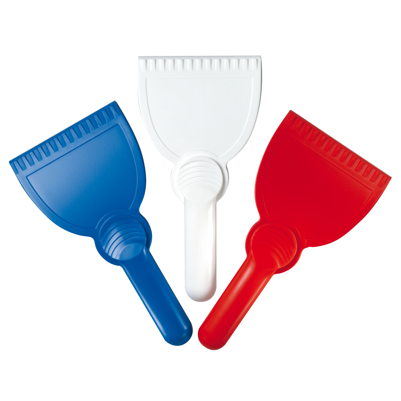 Ergonomisch geformt und stabil. Kunststoffeiskratzer mit glatter Kratzkante, Kratzzacken und handlichem Griff.