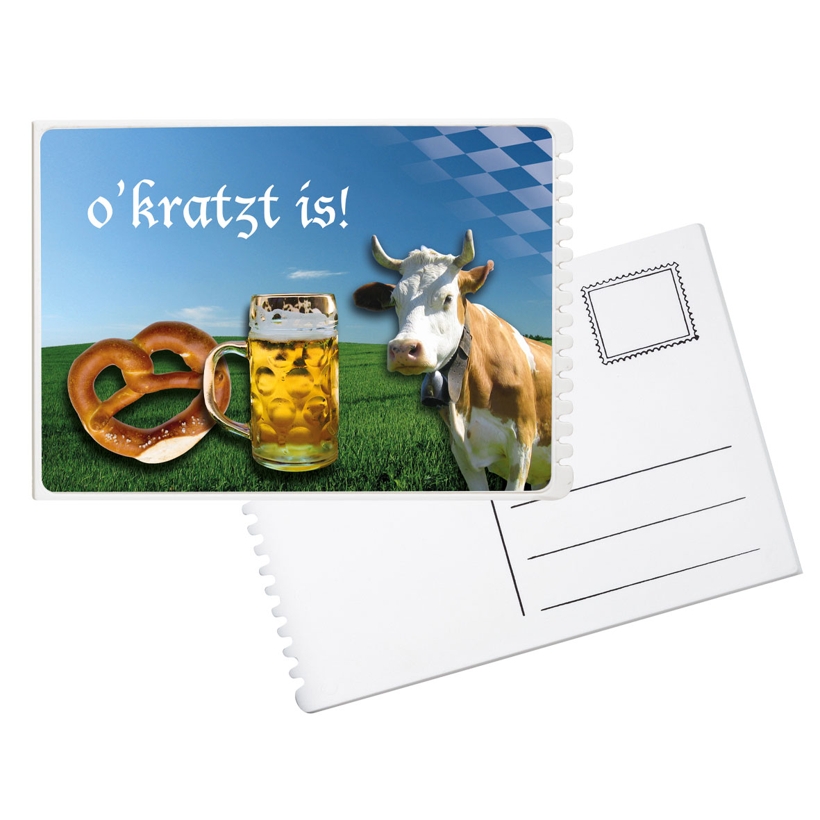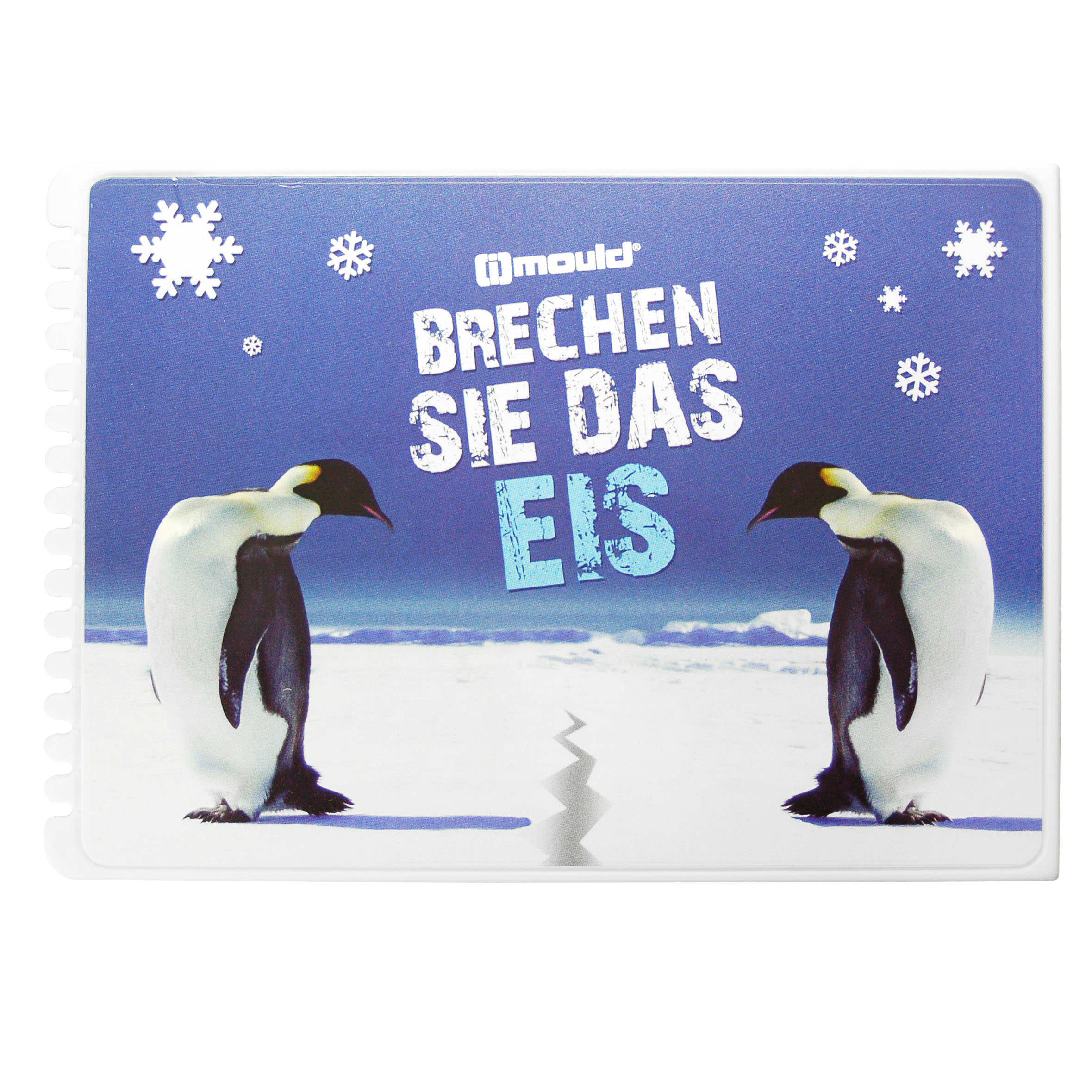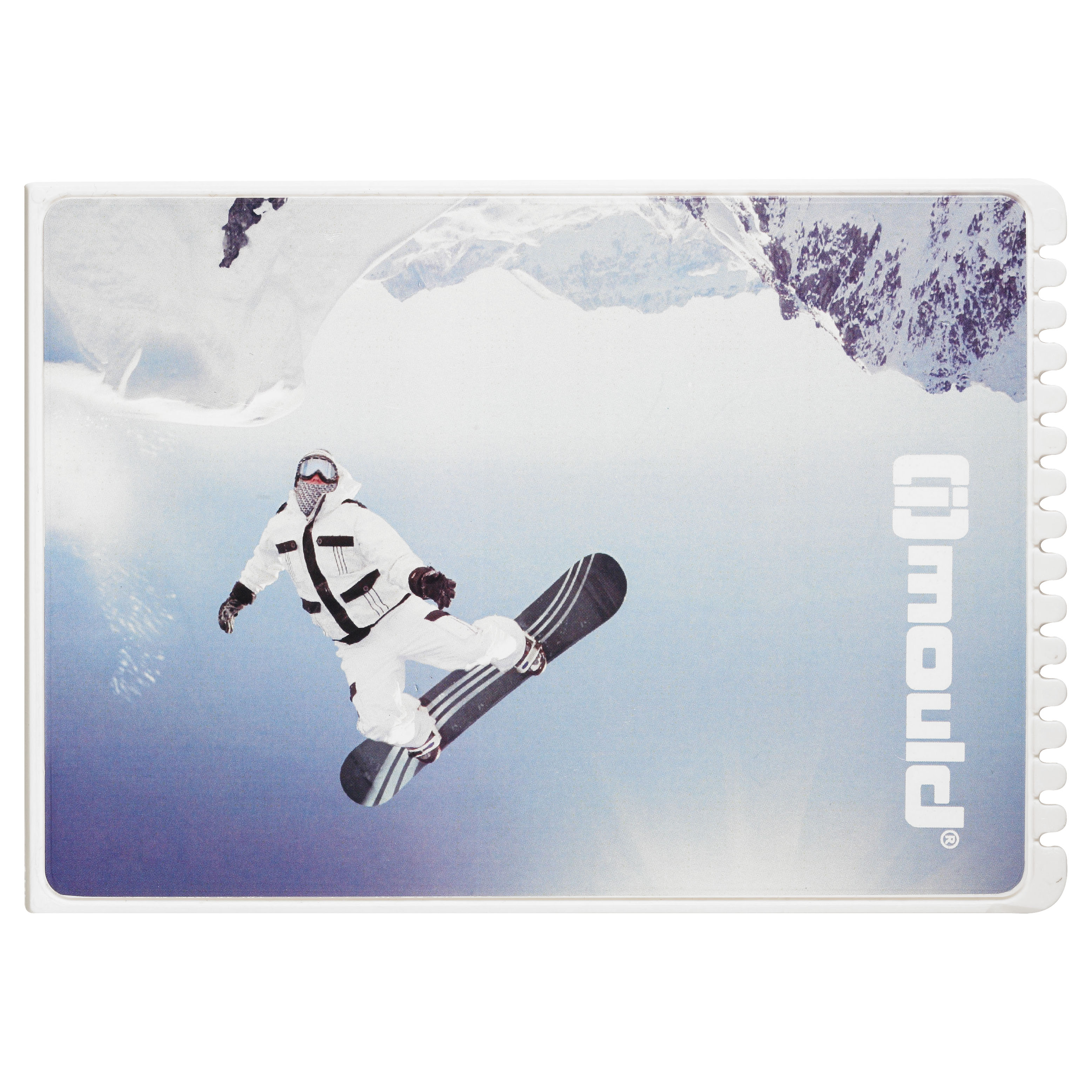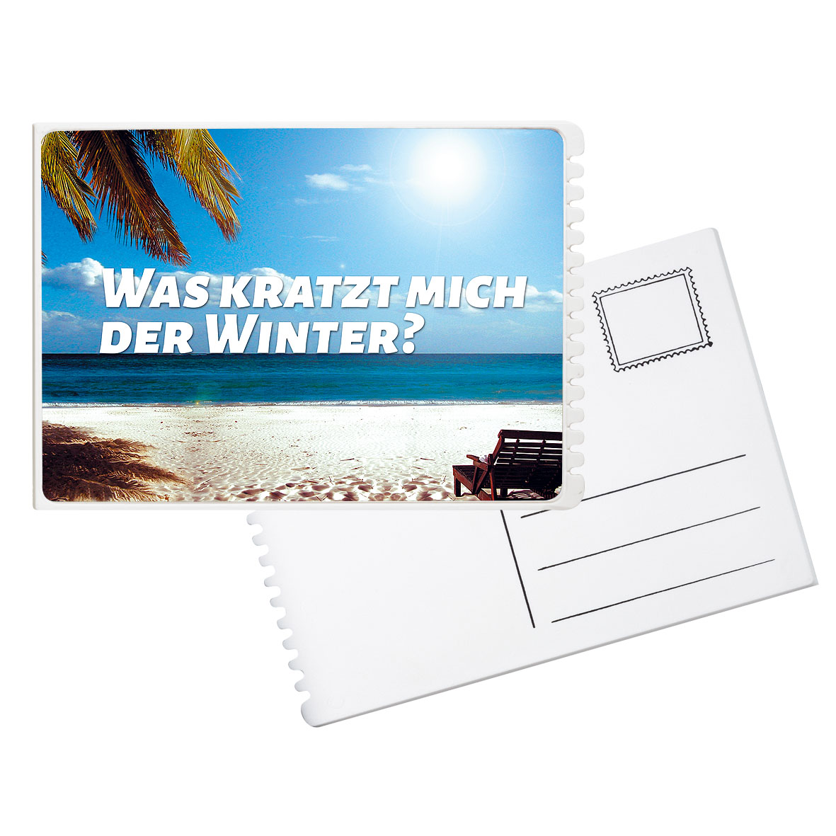 Flacher, rechteckiger Eiskratzer mit großer Werbefläche, Kratzzähnen und glatter Kratzkante. IMould-Veredelung möglich.