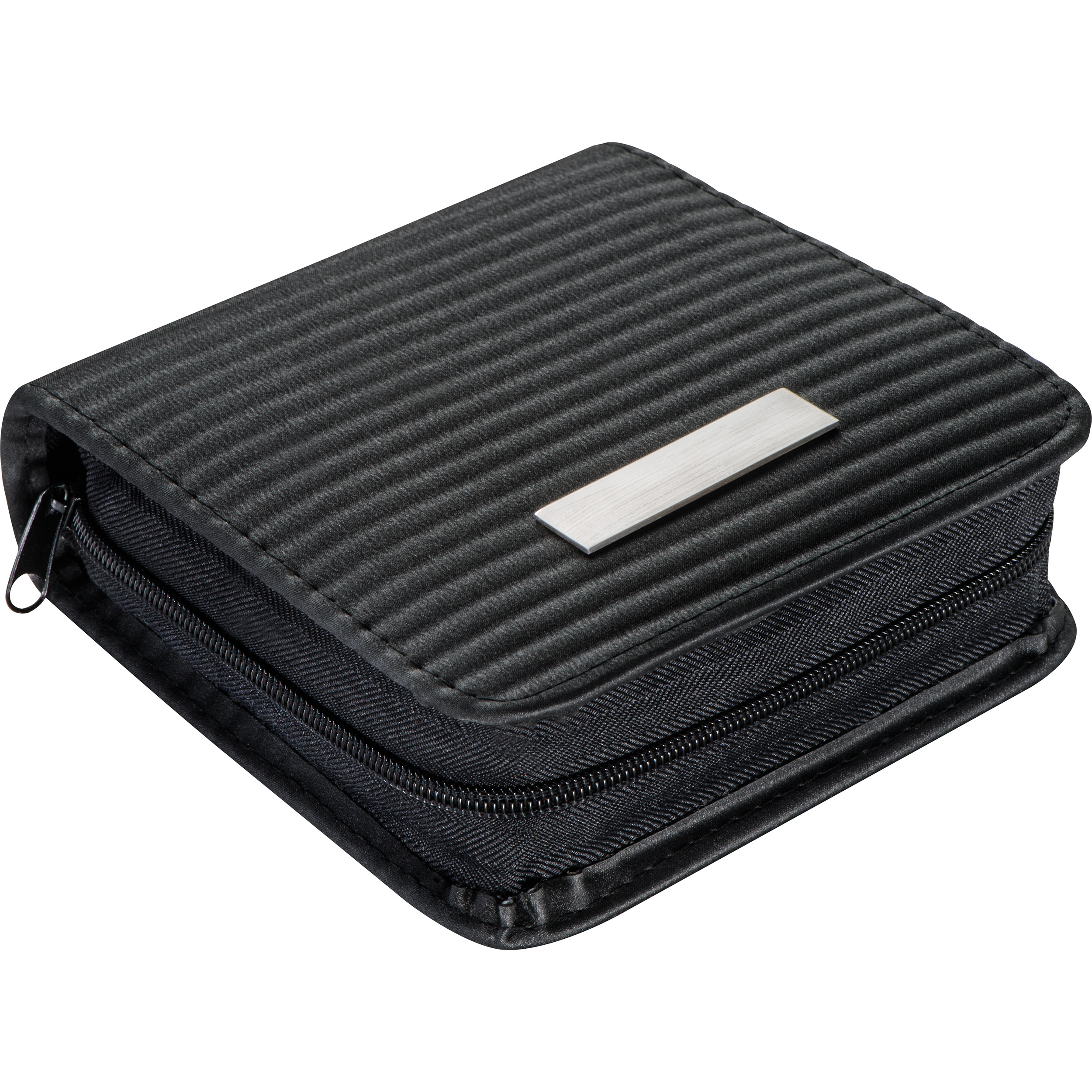 Extravagantes Schuhputz-Set mit Schuhcreme in transparent und schwarz, Schuhlöffel, Tuch, 2 Bürsten und Schwamm. Ihre Werbung lasern wir dezent auf das Metallschild.